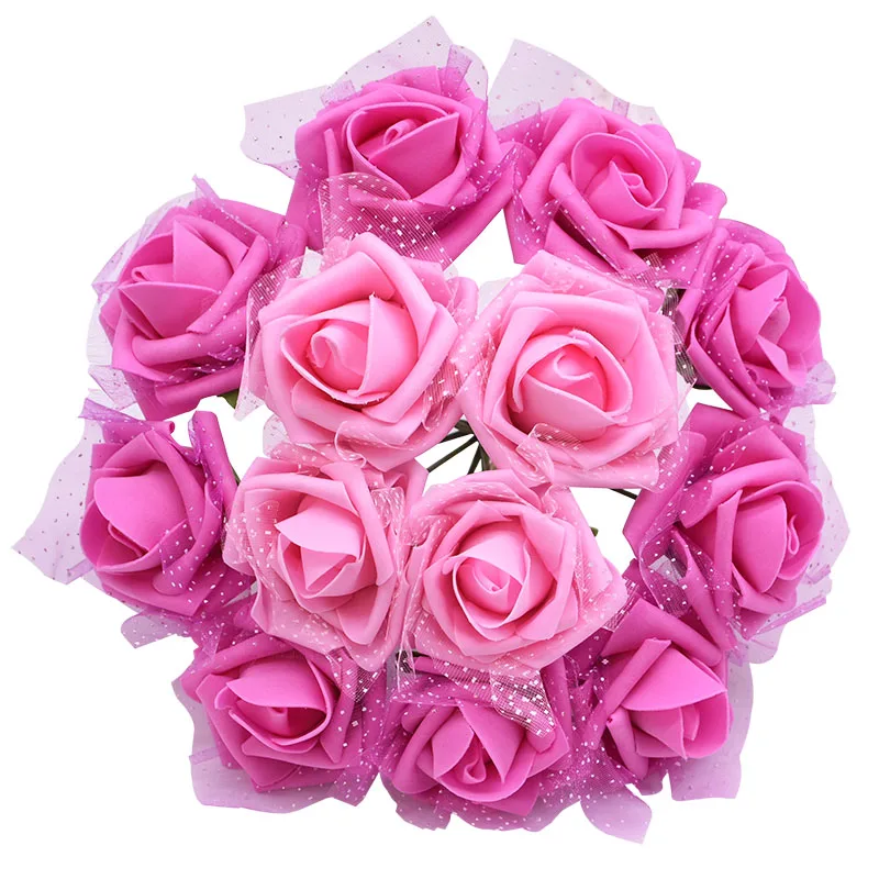 20 шт 7 см Искусственный цветок букет полиэтиленовый пенопласт роза с тюлем поддельные цветы сделай сам домашнее свадебное украшение венок подарок на день Святого Валентина
