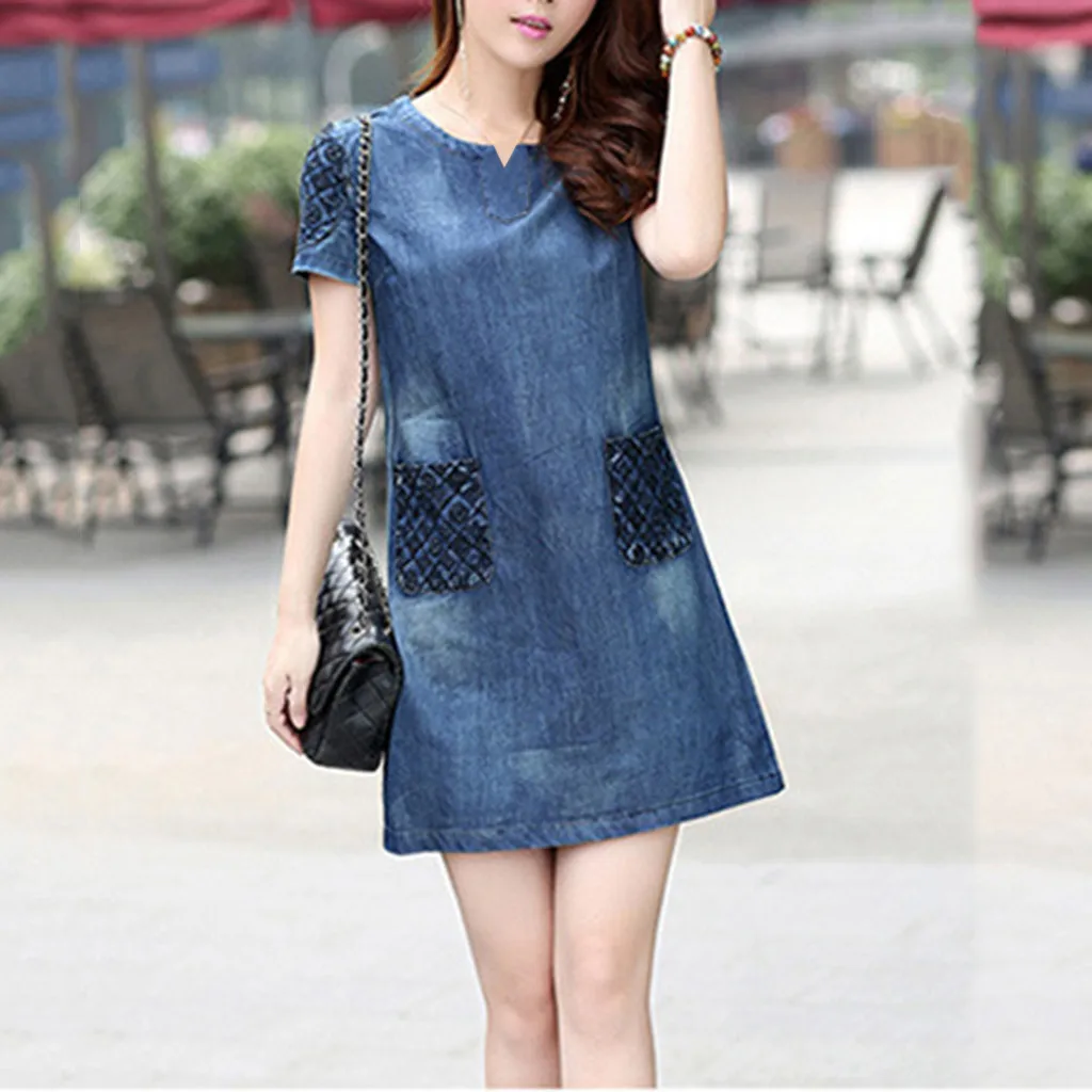 Женское летнее джинсовое повседневное элегантное Ковбойское джинсовое платье с карманами