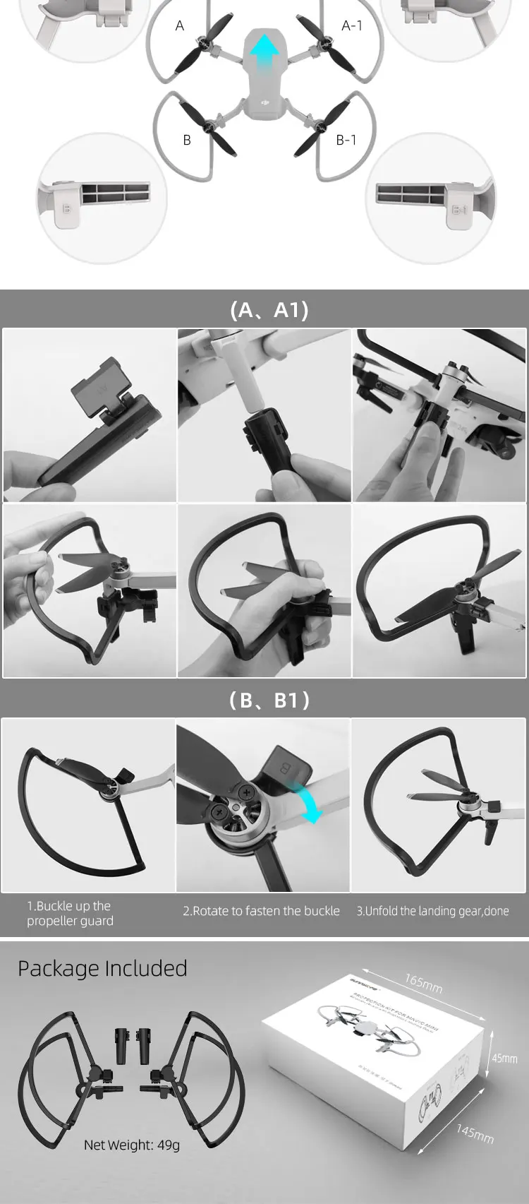 -Нет необходимости разбирать пропеллеры при установке.