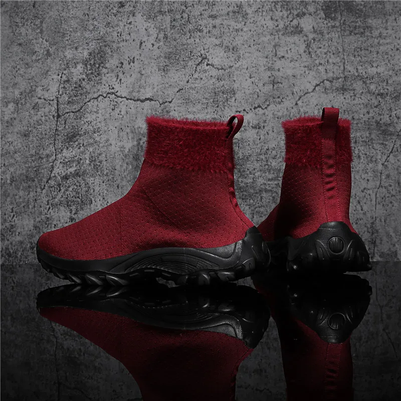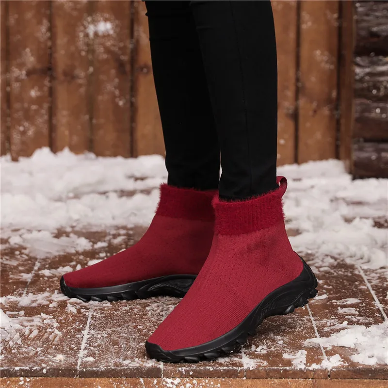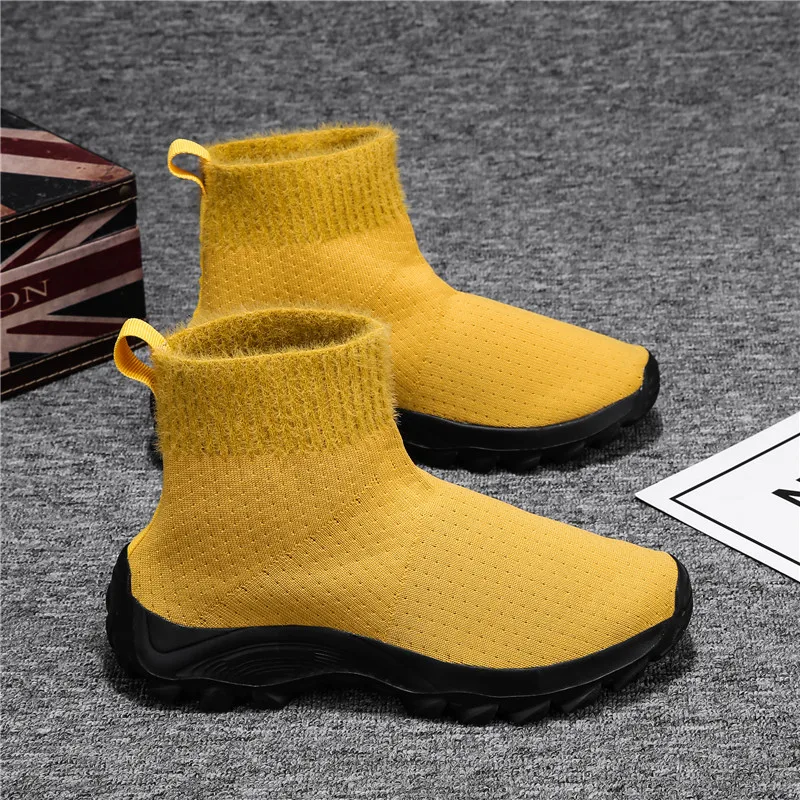 Женские кроссовки для бега; зимние вязаные носки; женская обувь; светильник; спортивные ботинки; уличная женская обувь на массивном каблуке; обувь для фитнеса с высоким берцем