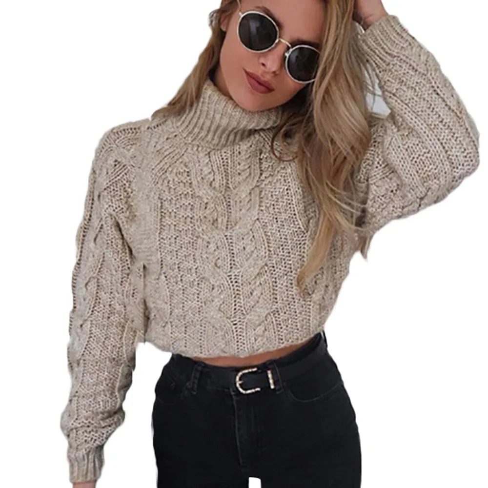 Вязаный женский зимний сексуальный пуловер с высоким воротником, повседневный трикотажный пуловер, короткий корейский облегающий свитер #10