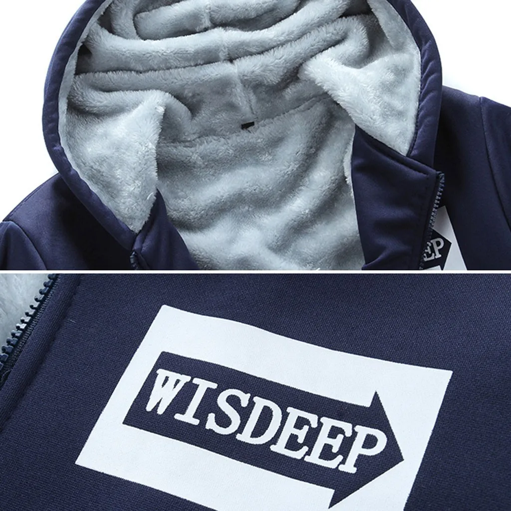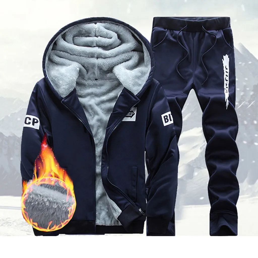 Мужская зимняя толстовка с капюшоном, теплый утепленный свитер на молнии с мехом внутри, штаны, комплекты из 2 предметов