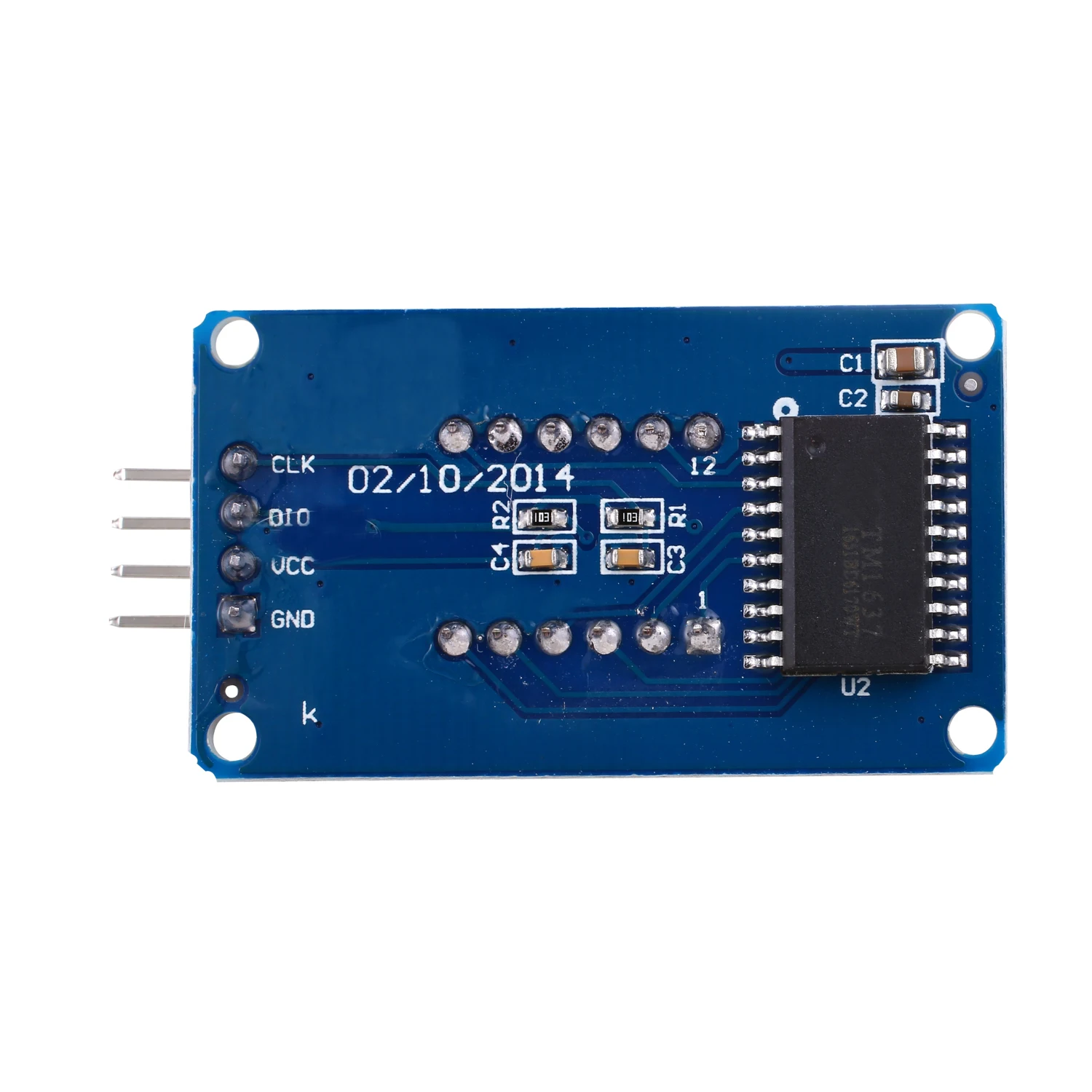 Модуль представляет собой 12 футов часы с 4-мя точками положительный цифровой (0,36 дюйм (ов) дисплейный модуль Драйвер IC TM1637, только две сигнальные линии может сделать СКМ четыре 8-сегментный светодиодный. Характеристики модуля: Дисплей мужской красный для четырех цифровых труб Регулируемая цифровая трубка 8 серый Уровень интерфейс управления для 5V или 3,3 V 4 M2 винты позиционирования отверстия для легкой установки 4 модуля интерфейса цифрового дисплея, как показано ниже: Интерфейс управления: в общей сложности четыре контакта (GND, VCC, DIO, CLK), GND на землю, VCC является источником питания, DIO ввода данных и вывода pin, CLK-это штырь сигнала часов; Цифровая трубка: 4 Общие анодные баллы с 0,36 дюймовым светодиодный, красный блики; Позиционирование отверстия: 4 M2 винты позиционирования Диаметр отверстия составляет 2,2 мм, точное позиционирование модуля просты в установке, для того чтобы достигнуть Интер-модуль комбинированный;
