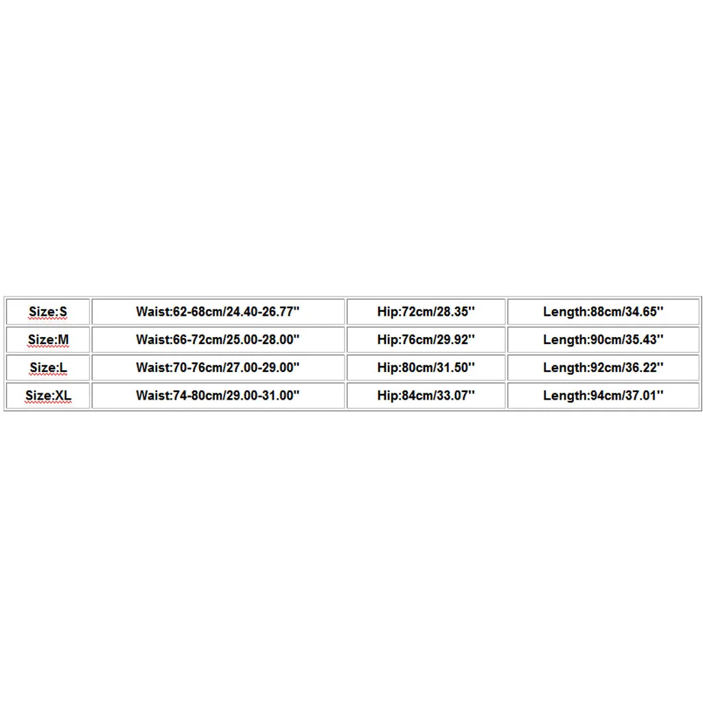 Размеры: S Талия: 62-68 см/24,40-26,77" Бедра: 72 см/28,35 дюйма Длина: 88 см/34,65 дюйма Размеры: М Талия: 66-72 см/25,00-28,00" Бедра: 76 см/29,92 дюйма Длина: 90 см/35,43 дюйма Размеры: L Талия: 70-76 см/27,00-29,00" Бедра: 80 см/31,50 дюйма Длина: 92 см/36,22 дюйма Размеры: XL Талия: 74-80 см/29,00-31,00" Бедра: 84 см/33,07 дюйма Длина: 94 см/37,01 дюйма