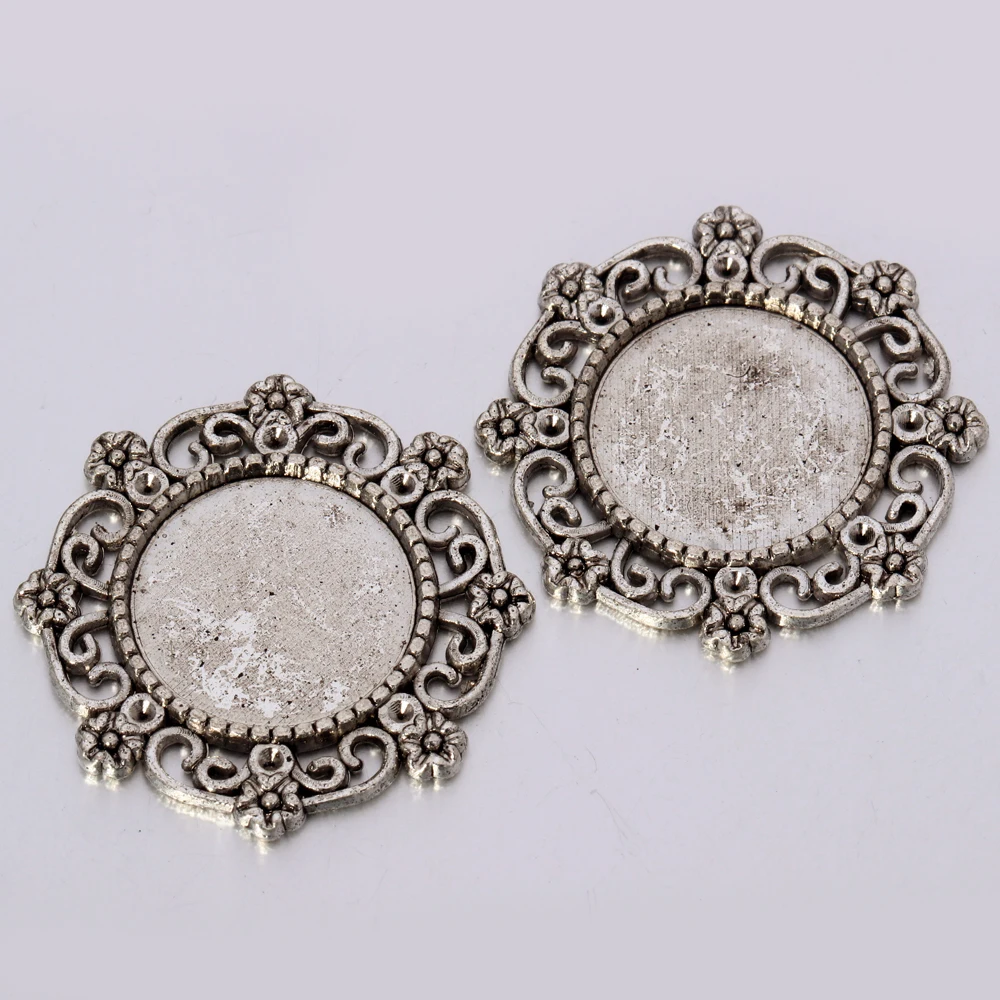 DC 10pcs/lot Blank Ancient Green/silver Flower Tray Fit 15mm Round Cabochon Cameo Setting DIY Necklace Pendant Jewelry Making