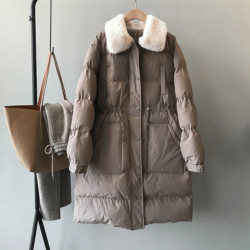 Бесплатная страусиное зимнее платье с длинными рукавами и капюшоном прямое