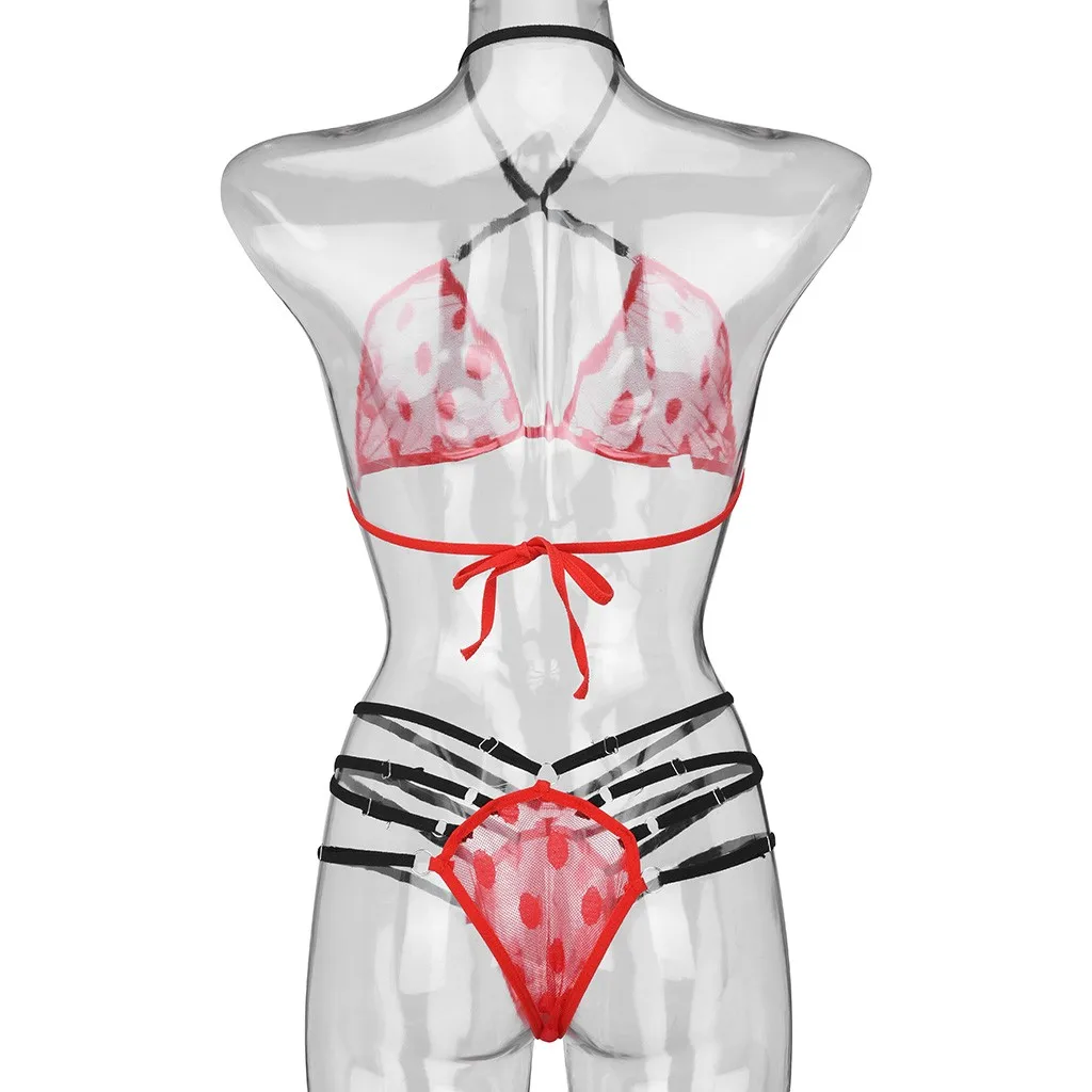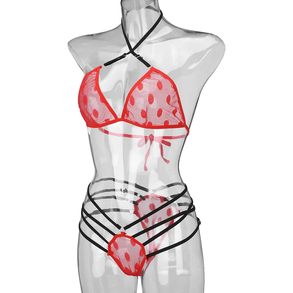 Новое Женское Сетчатое сексуальное красное нижнее белье больших размеров, беспроводной бюстгальтер, комплект нижнего белья, S-XL