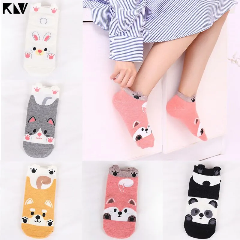 Ребристые трикотажные эластичные манжеты, короткие носки-башмачки, милый мультфильм кролик/собака/панда/кошка, дизайн 3D лапы животных.