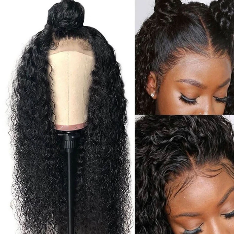 Вьющиеся человеческие волосы, парики для женщин, перуанский парик, бесклеевая кружевная передняя часть, человеческие волосы, парики с детскими волосами Beaufox Remy 180%