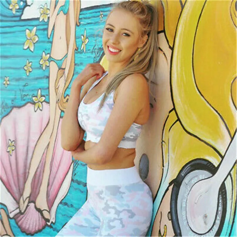 Модный комплект для йоги Женская Спортивная одежда из 2 предметов с принтом Одежда для тренажерного зала одежда для бега спортивный костюм купальники