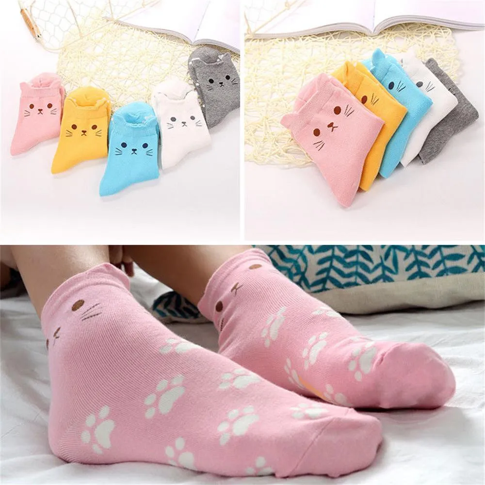 5 шт., милые Носки с рисунком кота, полосатые женские Носки с рисунком кота, хлопковые носки для пола, Kawaii, зимние носки с 3D рисунком, Meias Skarpetki