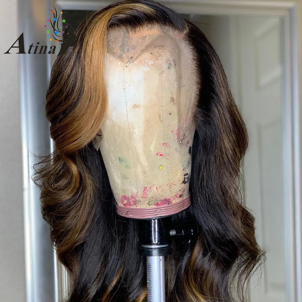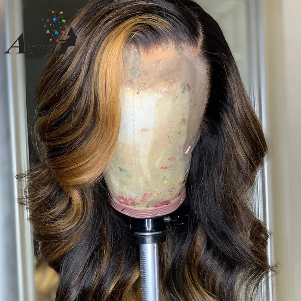 13x6 волнистые медовые светлые Омбре цвет Выделите кружевные передние человеческие волосы парики для черных женщин Remy бразильские предварительно сорванные с детскими волосами