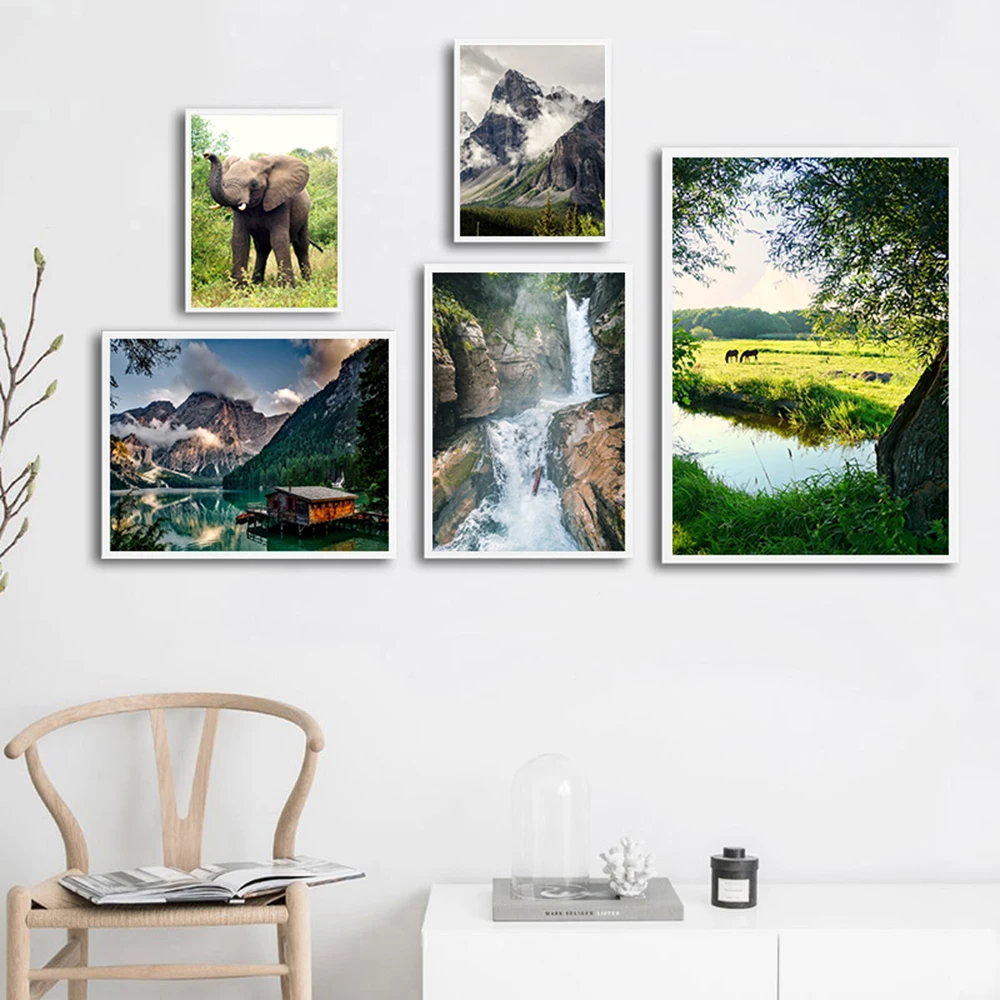 Холст плакат озеро пейзаж живопись скандинавский стены Искусство Слон декоративная картина печать для гостиной домашний декор