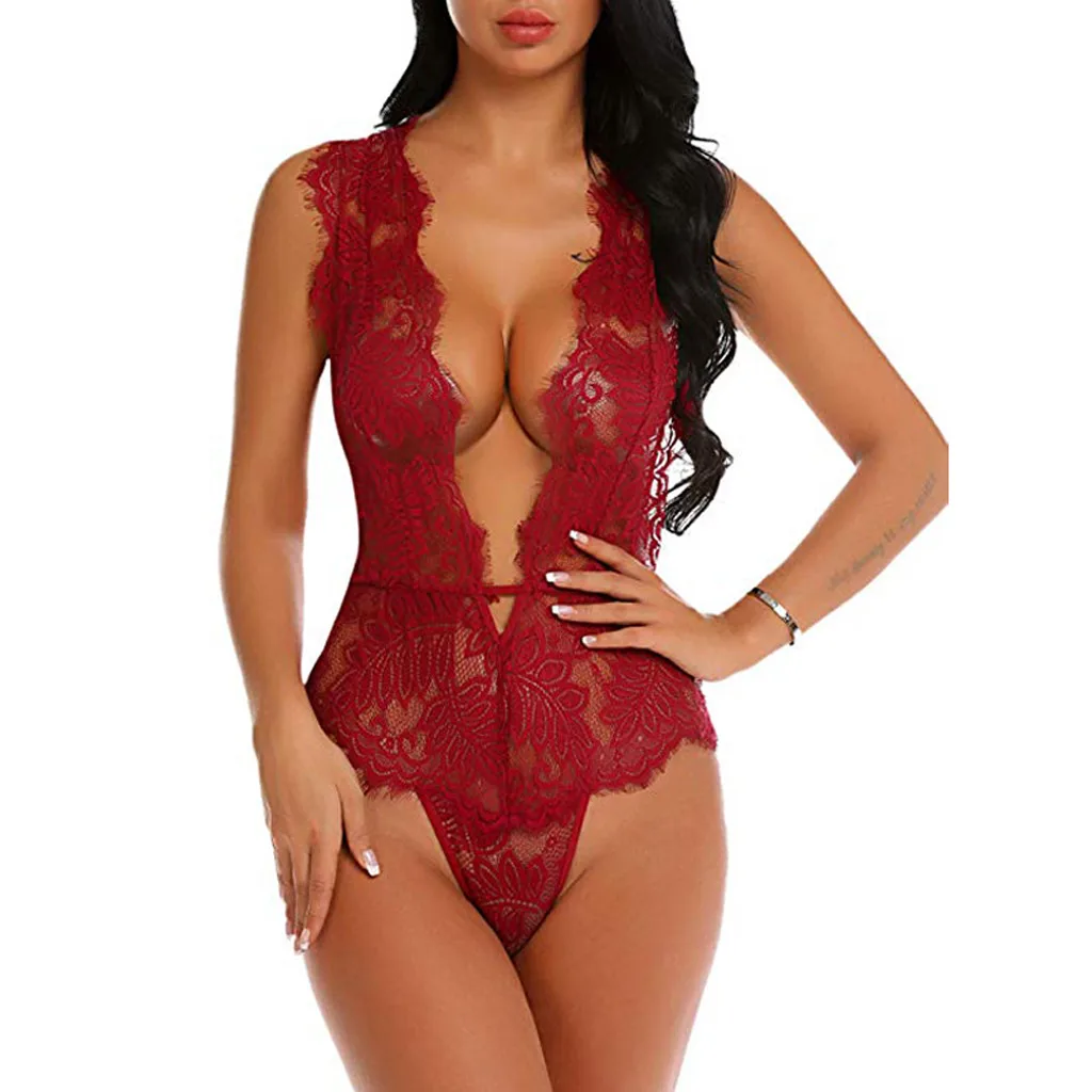 Женское цельное белье Глубокий v-образный вырез Кружевное боди мини сексуальное белье в стиле babydoll