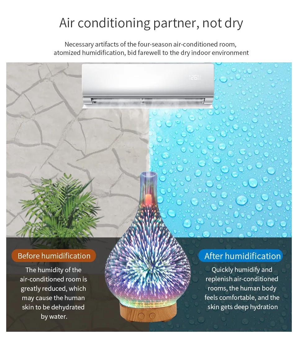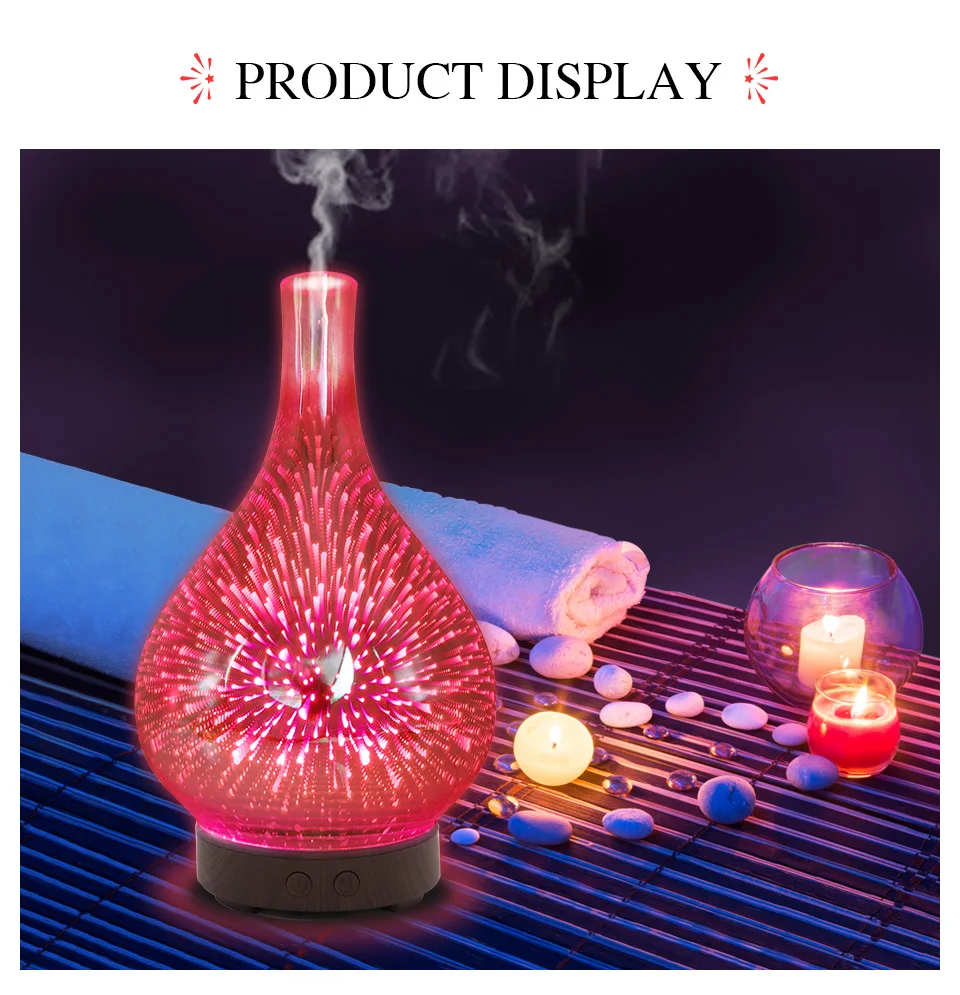 FUNHO 3D Стекло Ароматерапевтический увлажнитель воздуха Арома-диффузор для эфирных масел, ультразвуковой увлажнитель воздуха с 7 цветов светодиодный светильник для Офис