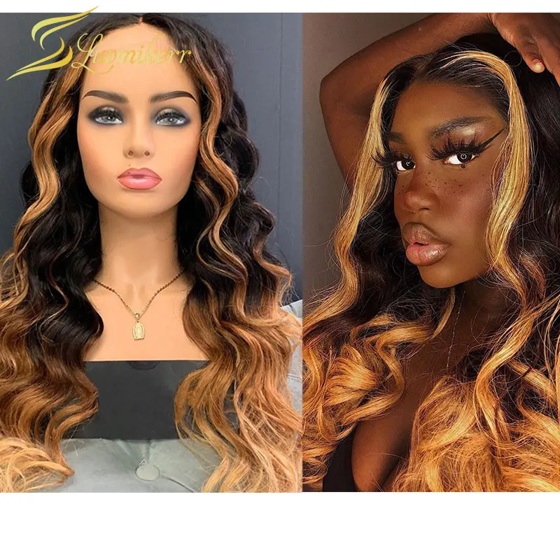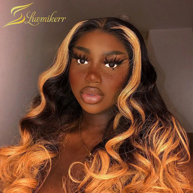 Индийский цветной 13 × 6 глубокая часть фронта шнурка человеческих волос парики для черных женщин Омбре свободная волна фронтальный парик предварительно сорвал Glueless Remy