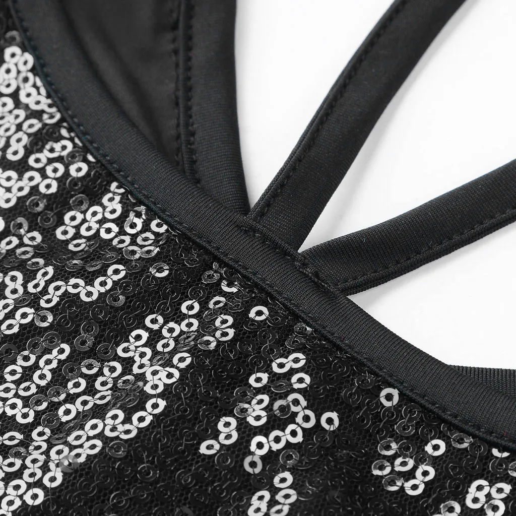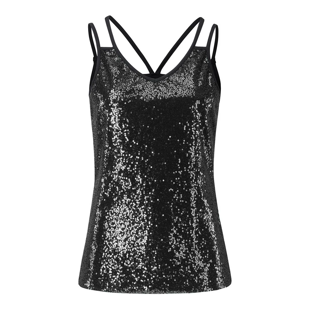 3.VШея, Без рукавов,Застежка-липучка, лямки-спагеттиБлестящий топ на бретелях с блестками.Очаровательный и привлекательный, простой, но модный.Показывает ваши изгибы с шармом.Поверхность верха полностью расшитая блестками, а подкладка-мягкая ткань.