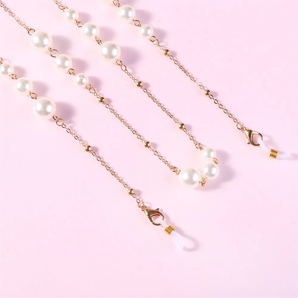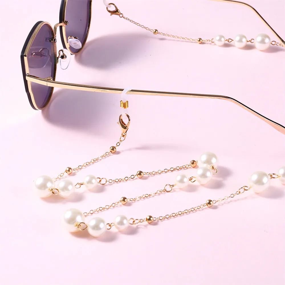 Цепочка для очков с металлическими листьями и жемчугом, нескользящая
