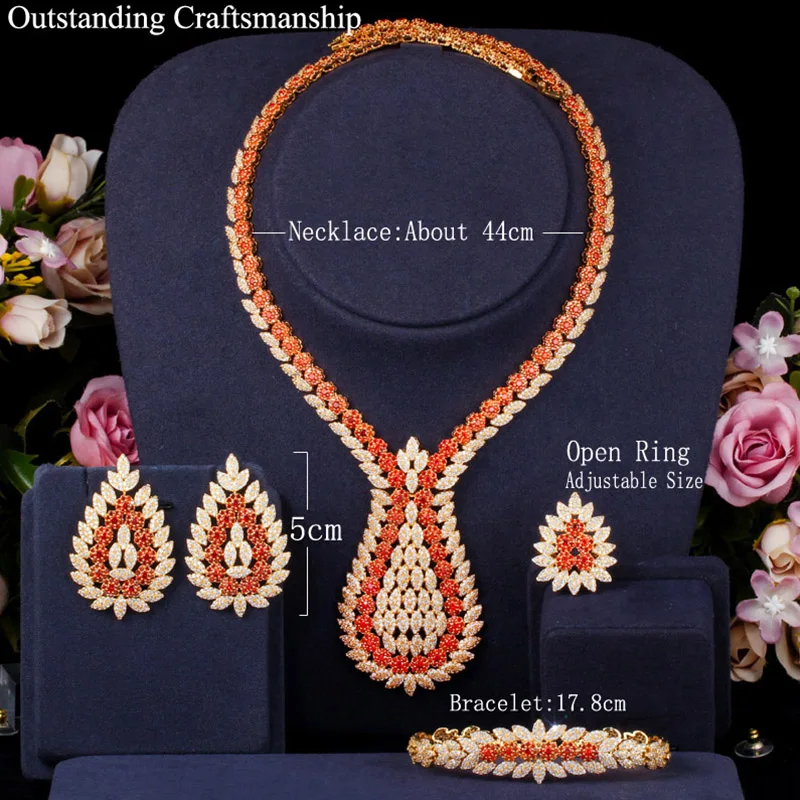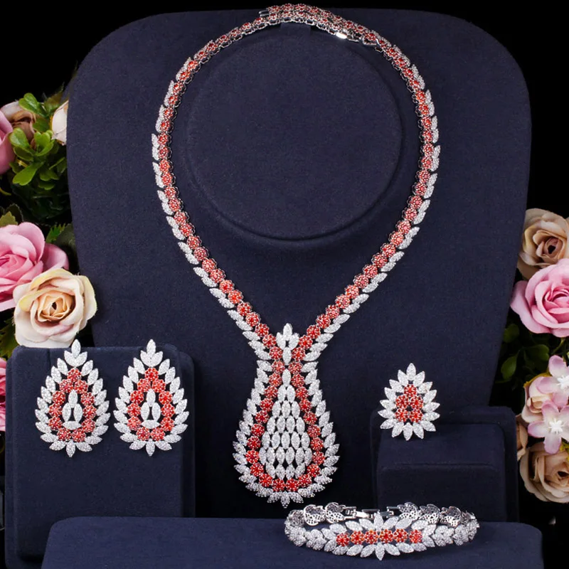 Название брендаPera CZНомер моделиJ313ПроисхождениеКитайМатериалЦирконийПолДля женщинСтильКлассическийТип товараЮвелирные наборыСобытиеENGAGEMENTТип металлаМедьФорма/узорРастениеМодное/качественноеМодаВключено Дополнительное Описание ИзделияOne Necklace,One Pair Earrings,One Bracelet,One RingТип комплектов ювелирных изделийОжерелье/серьги/Кольцо/браслетЕдиница измерения100000017Количество1Stone MaterialZirconia PavedJewelry ShapeBig Drop JewelryMain Stone ColorRed , White ColorOccasionEngagement , Wedding , Dancing Party , Banquet Dinner, PartyMetal ColorWhite Gold , Yellow Gold JewelryBracelet Size17.8 cmBest Gift ForDaughter / Girl friend / Wife / MotherNecklace SizeAbout 44 cmEarrings Size5 cmItem NamePera CZ Jewelry