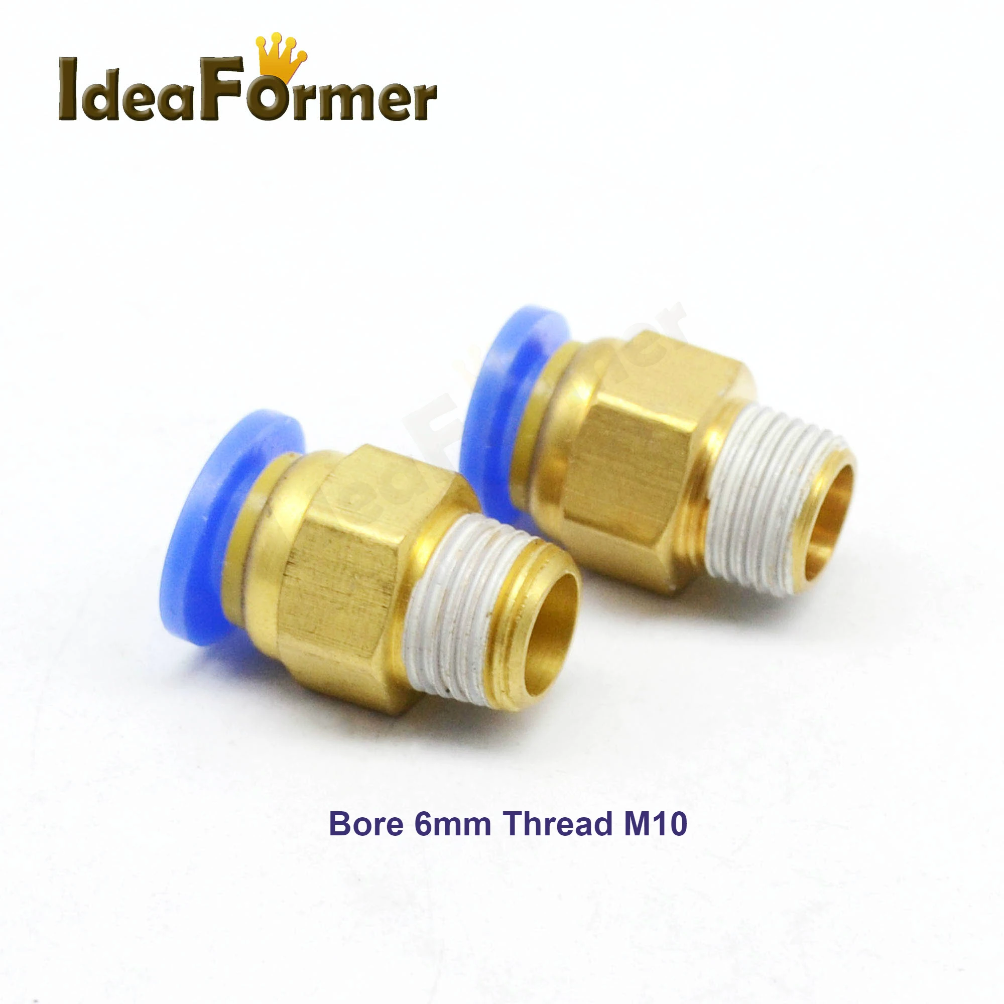 PC4-M6: диаметр отверстия 2 мм, применимый внешний диаметр 4 мм PTFE трубки для 1,75 мм fliament, Резьба M6. PC4-01: диаметр отверстия 2 мм, применимый внешний диаметр 4 мм PTFE трубки для 1,75 мм fliament,M10(3/8) Резьба винта. PC6-01: диаметр 4 мм, наружный диаметр: 4/6 мм PTFE трубка для воздушных компрессоров 3,0 мм fliament,M10(3/8) с зажимом медной проволоки.