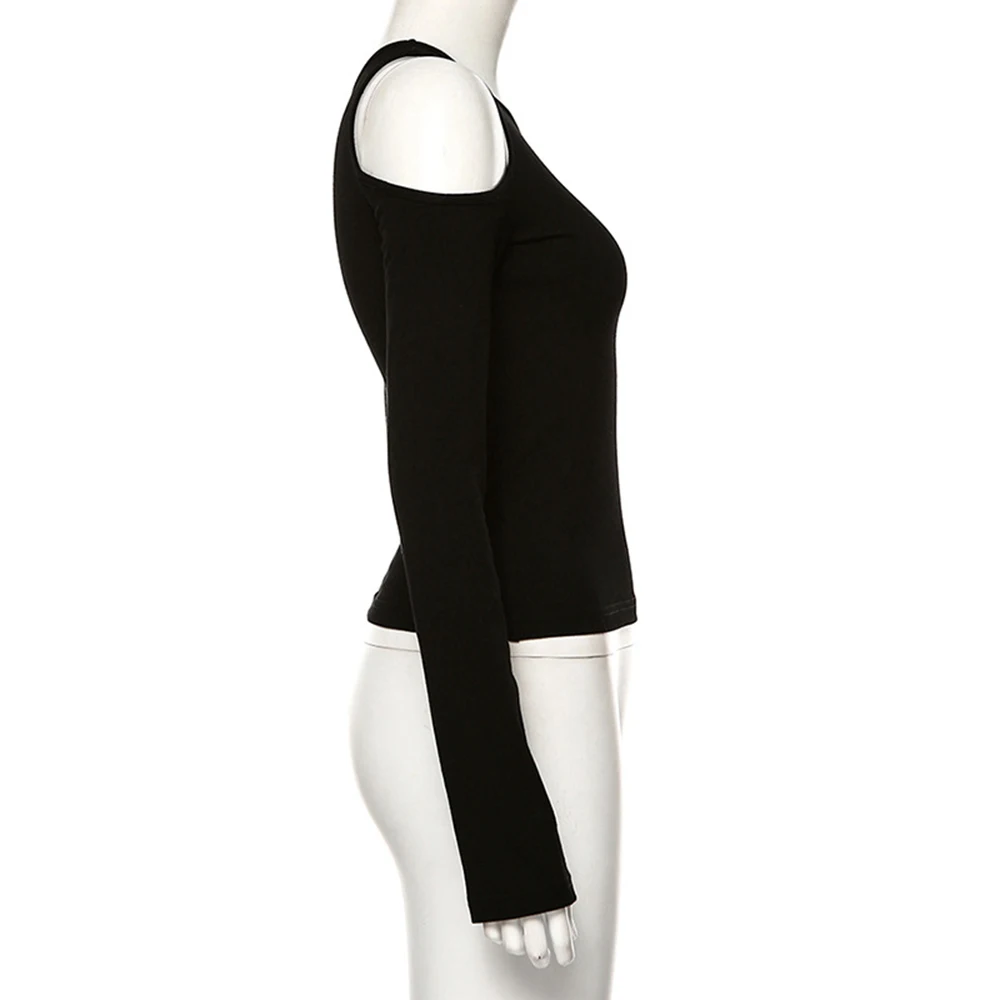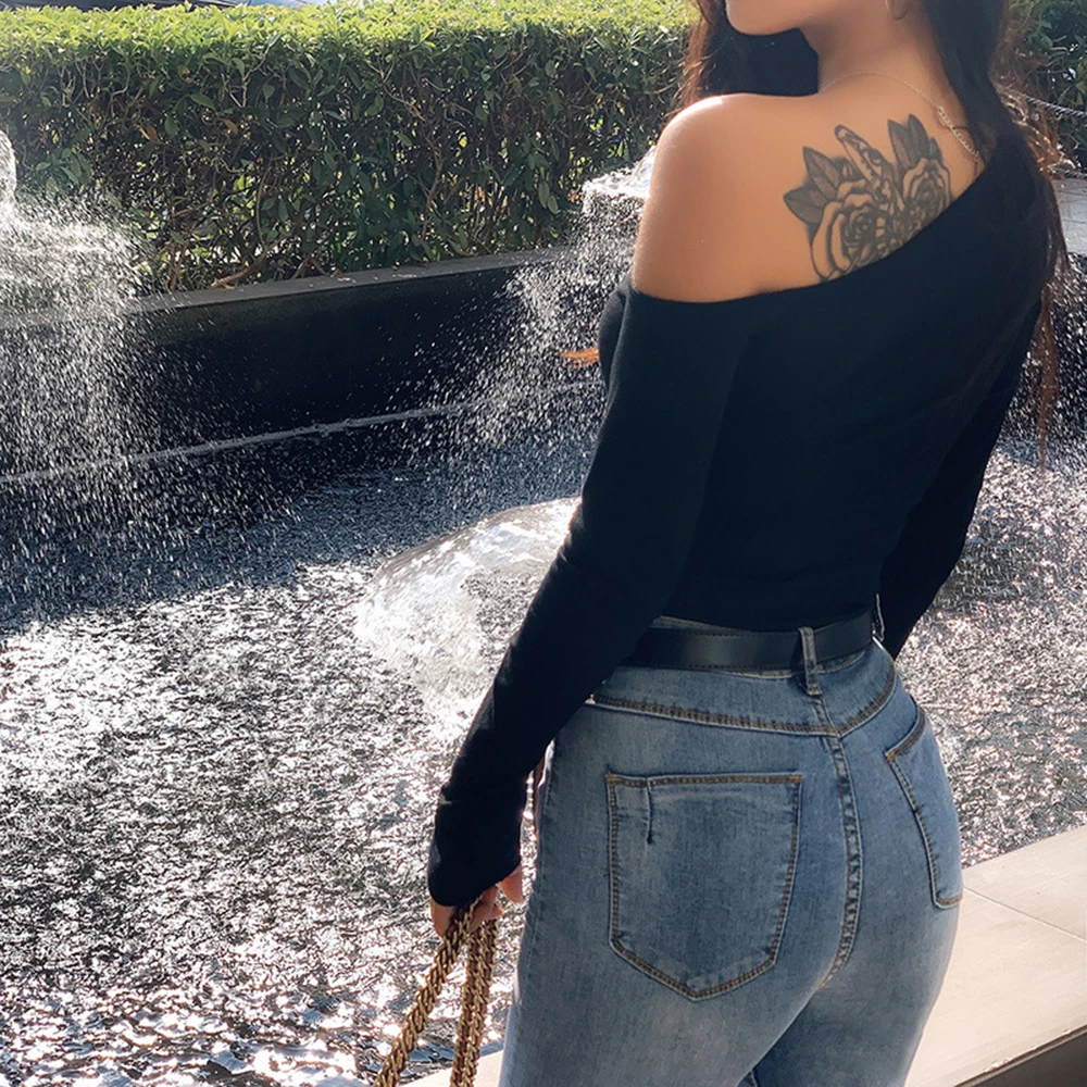 Сексуальная Женская тонкая футболка с принтом Blusa Mujer топы женские осенние весенние футболки бодикон с открытыми плечами с длинным рукавом Базовая футболка Топ