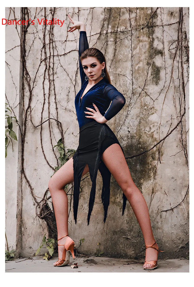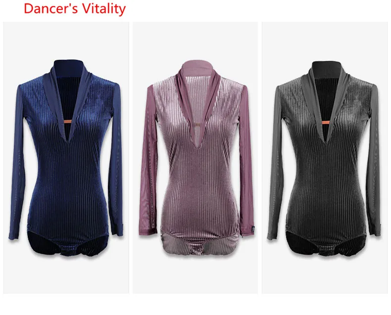 Женская одежда для латинских танцев, велюровый костюм с длинным рукавом и v-образным вырезом, современный тренировочный костюм Cha Foxtrot Quickstep для танцев