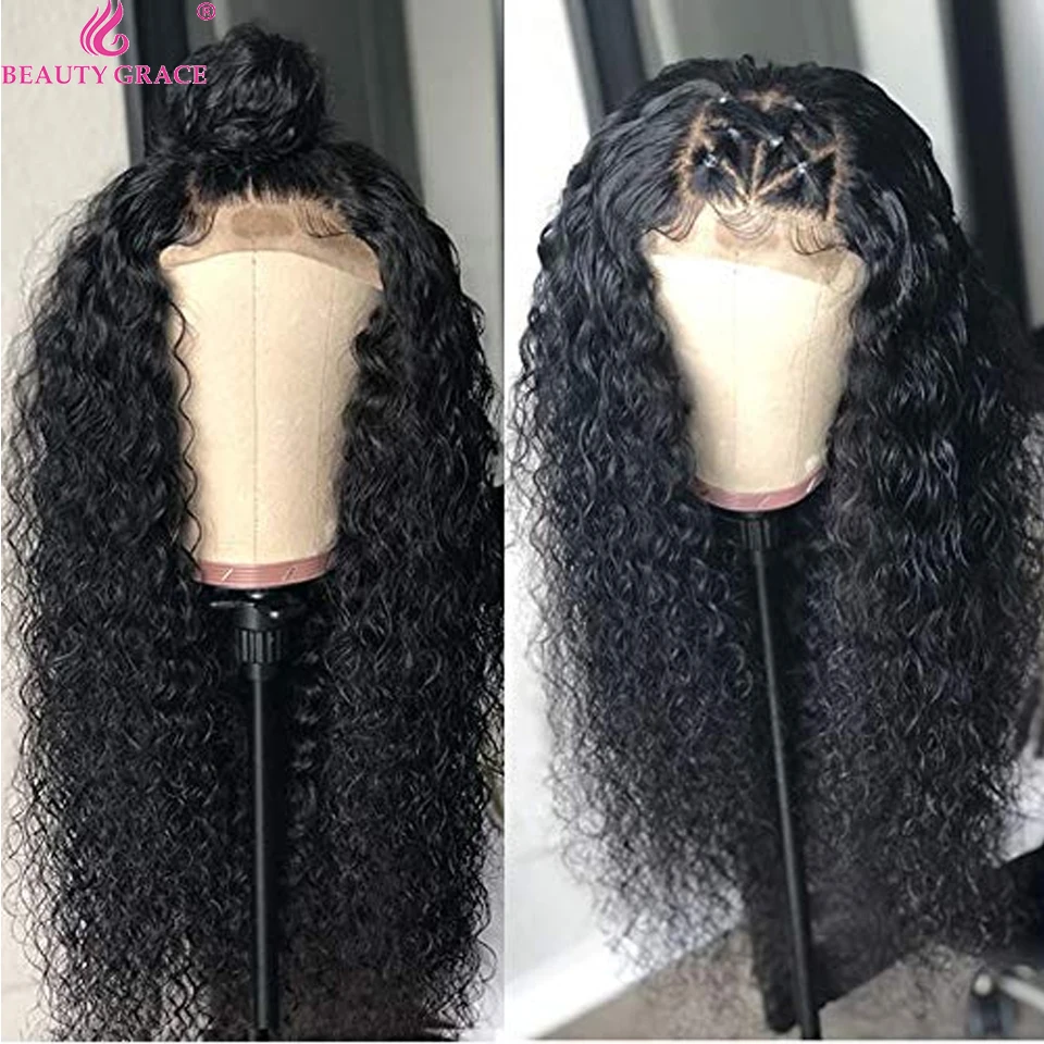 Афро кудрявые человеческие волосы парик фронта шнурка 4X4 прозрачный парик закрытия шнурка влажные и индийские волнистые волосы парик 10-26 дюймов