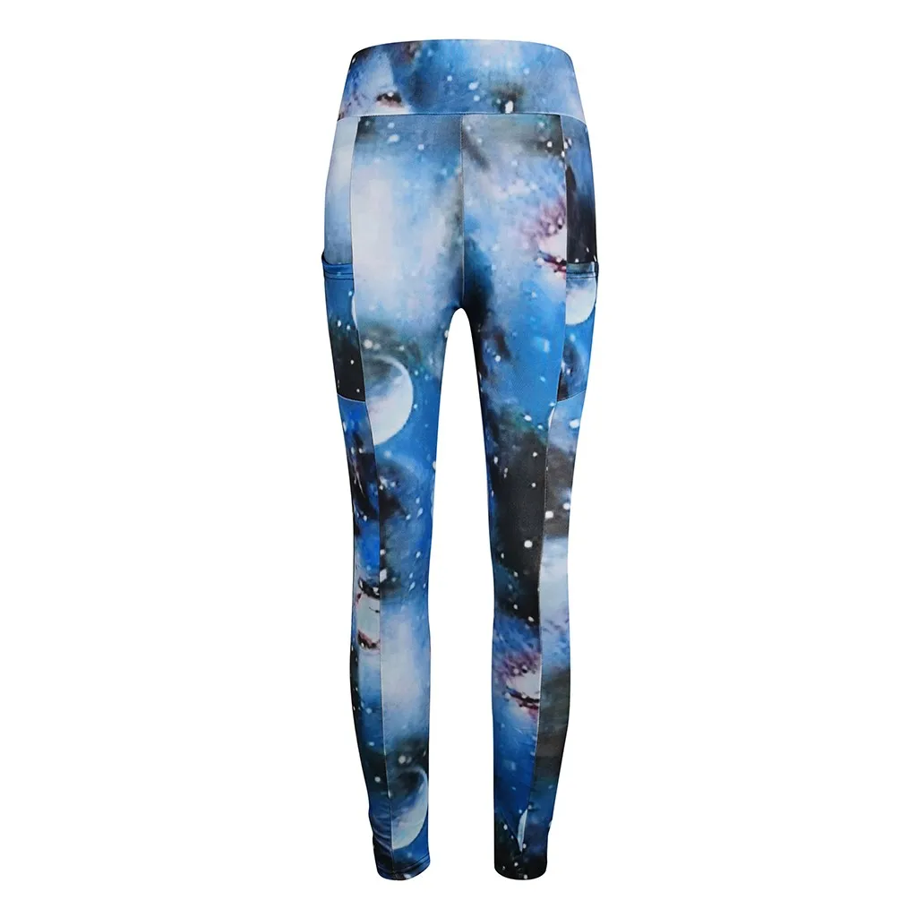 Женские модные леггинсы космическая галактика ночное небо Тонкие штаны для йоги с карманом