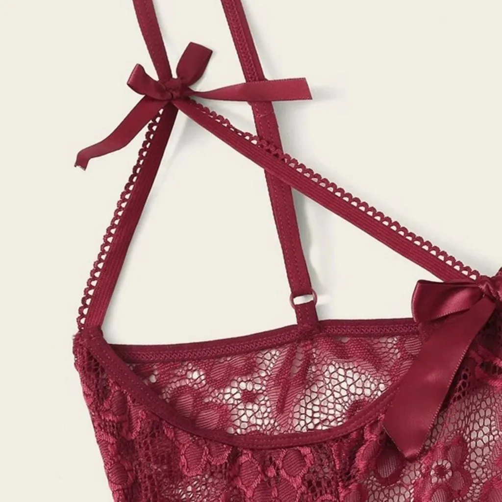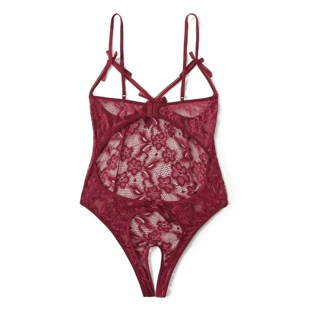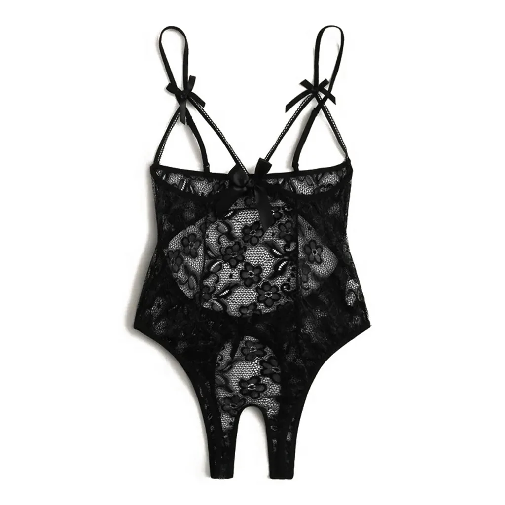 Женское Кружевное боди с бантом и открытой промежностью, боди с открытой спиной, нижнее белье-комбинезон