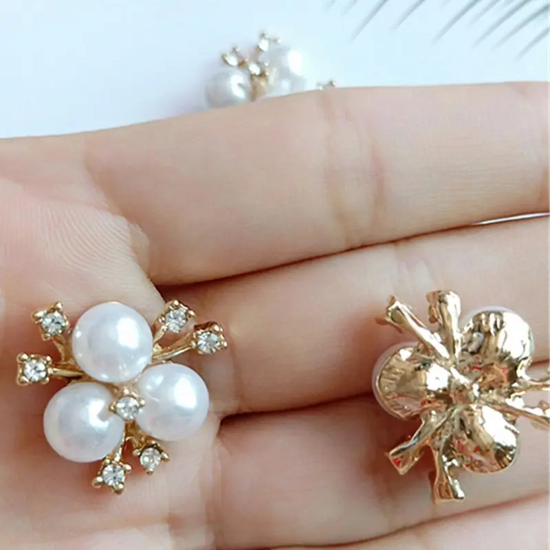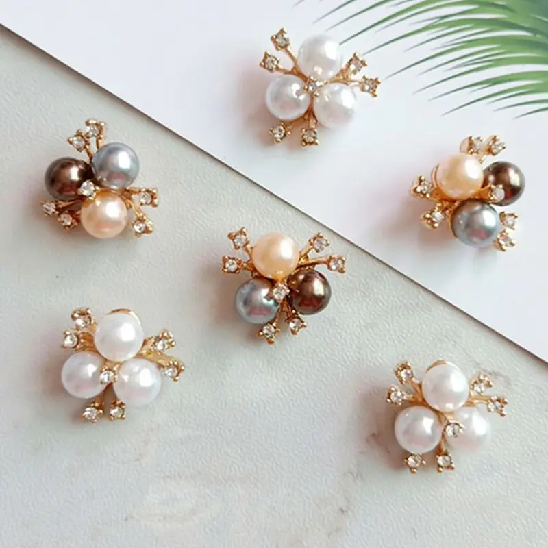 10 шт./компл. Искусственный Жемчужный Цветок из горного хрусталя, украшение, брошь с плоским основанием, кнопки для рукоделия, аксессуары для свадебной вечеринки