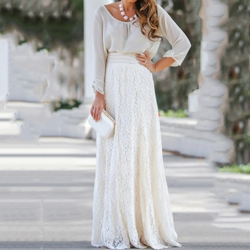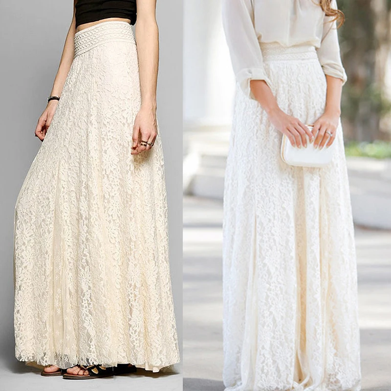 Лето/весна/осень белая длинная Бохо макси юбка новая высокая талия женские длинные сетчатые шифоновые юбки женские модные кружевные юбки