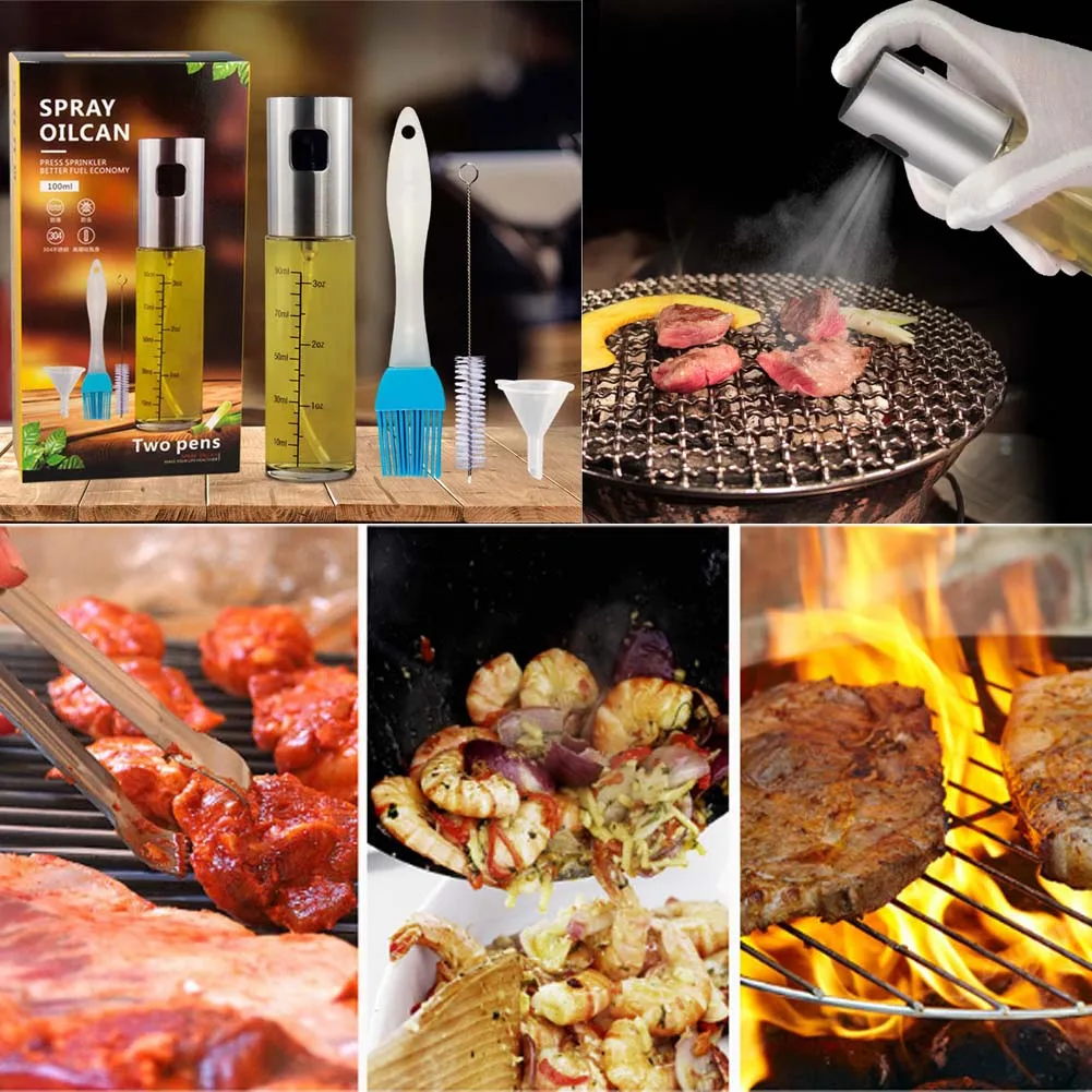Бутылка для распыления масла + 1 силиконовая щетка + 1 чистящая щетка + 1 Воронка
