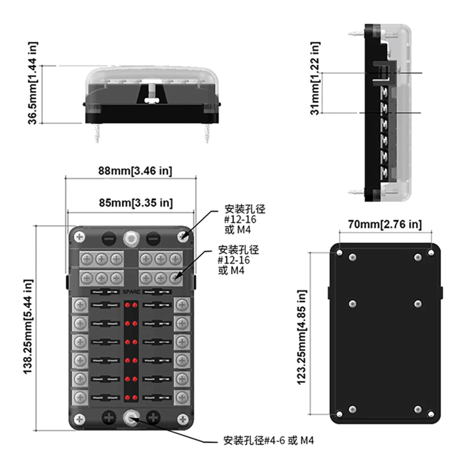 * Все крепежи изготовлены из нержавеющей стали, блок предохранителей является входным, и выходной конец фиксируется затягивающими винтами, которые могут быть установлены более быстро, И защитная коробка фиксируется саморезами, что делает установку проще и безопаснее
