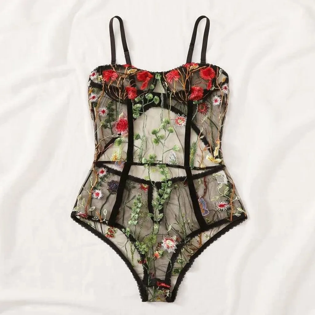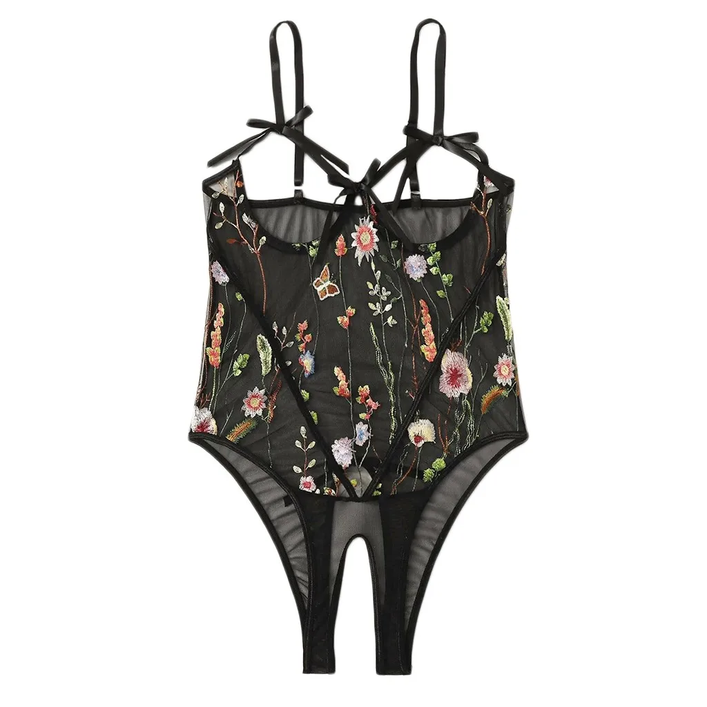 Цветочное вышитое боди, женское нижнее белье, Экзотическая одежда, сексуальный прозрачный комбинезон с открытой спиной, ночное белье для женщин, боди encaje