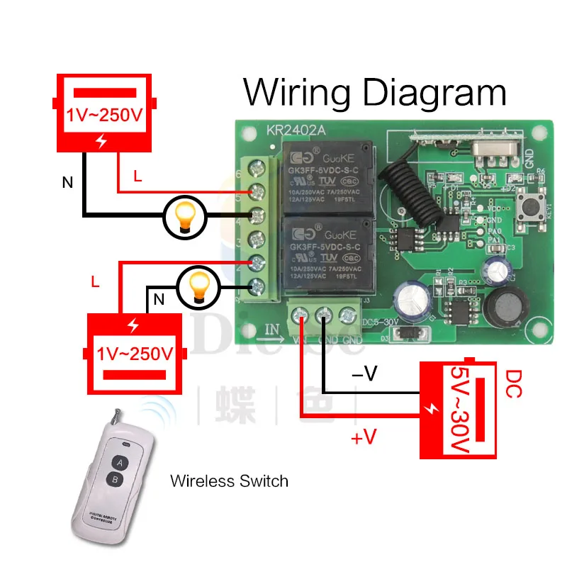 rf Remote Control System 433Mhz Universal Wireless DIY Smart Switch DC 5V~30V 2CH rf Relay Receiver and Long Range Transmitter