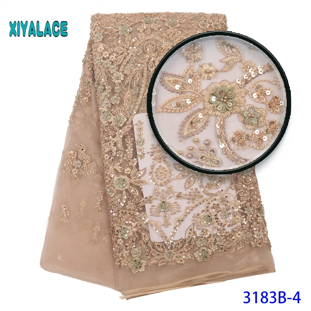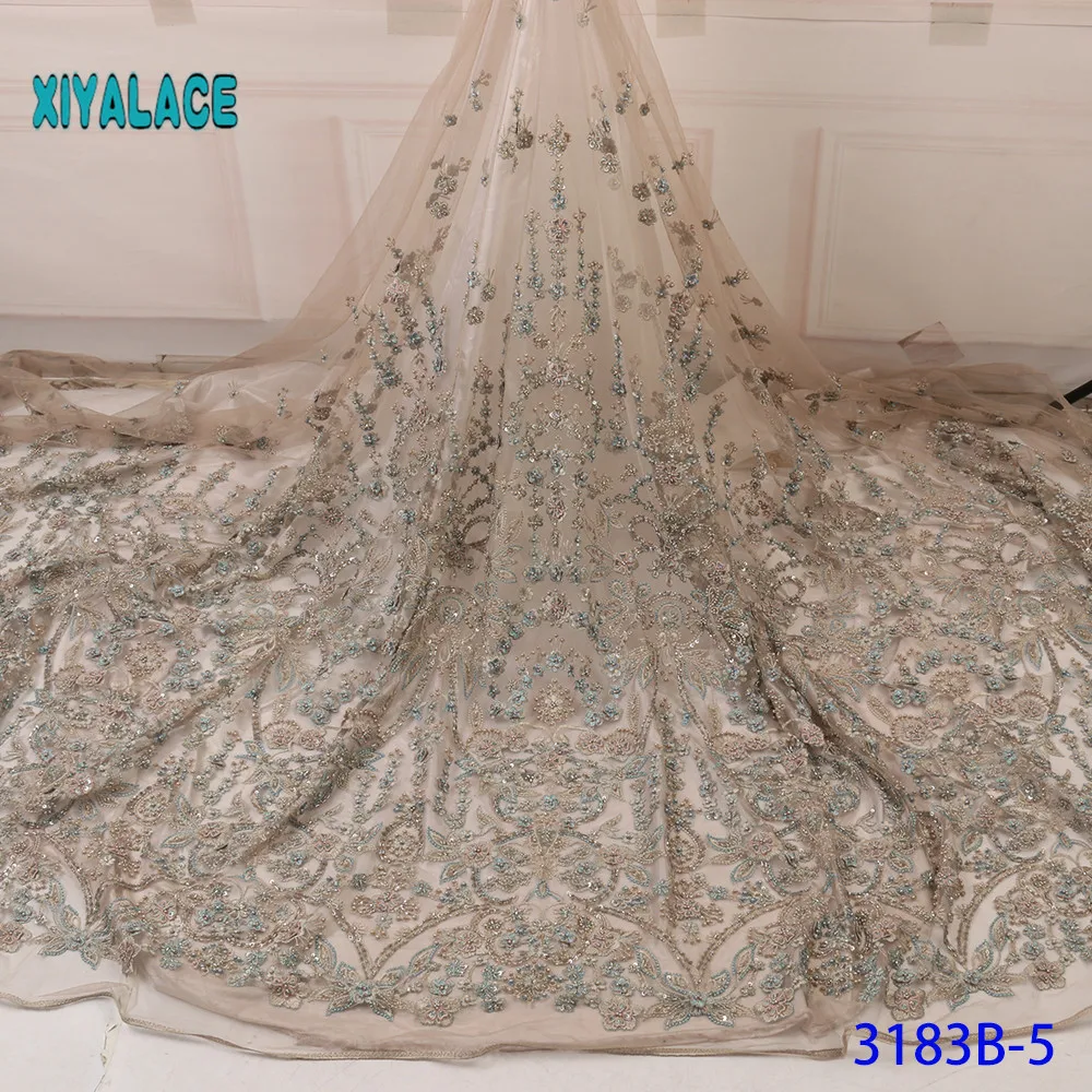 3D кружева 2020 высокое качество бисером нигерийские кружева ткань вышивка Французский Тюль Кружева с камнями для невесты YA3183B-2