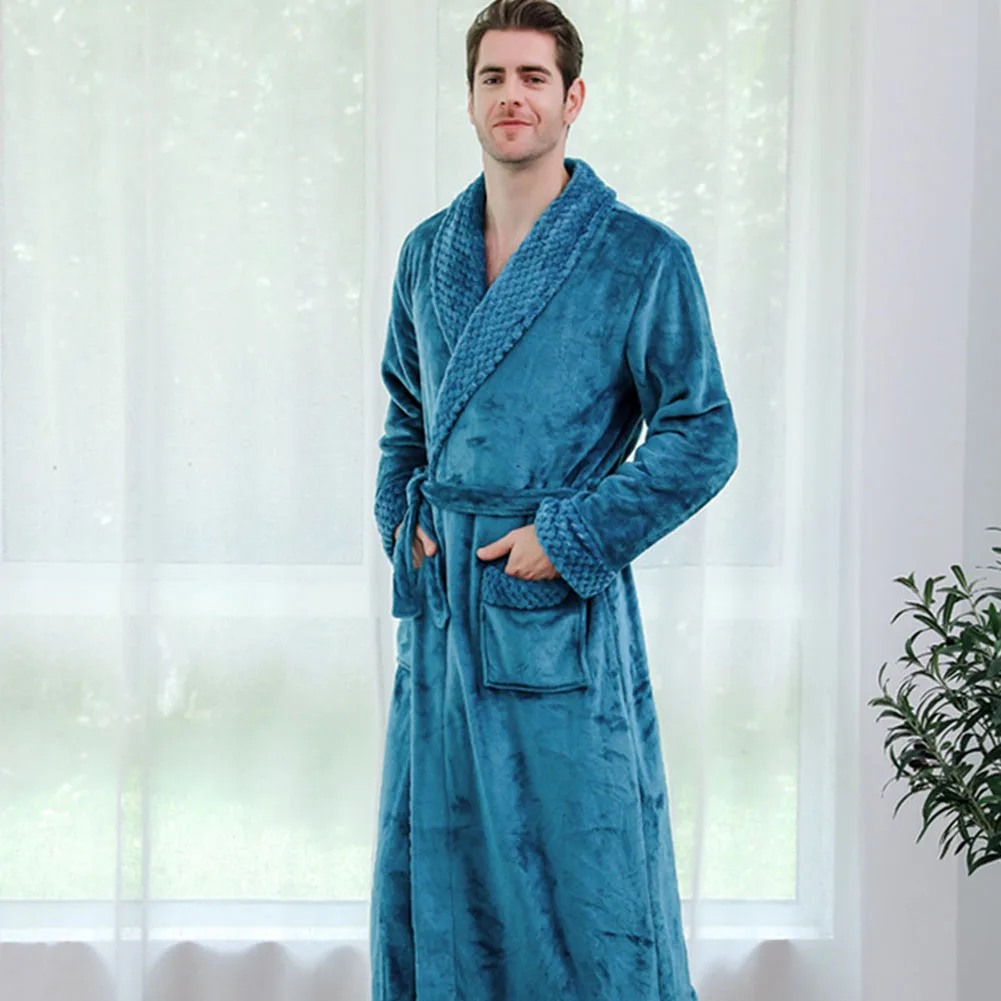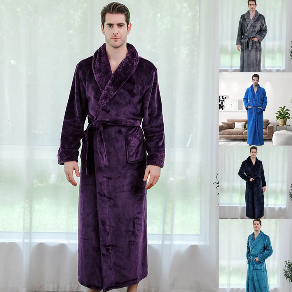 Новая мужская зимняя Ночная рубашка на шнуровке, халат, Толстый Теплый удлиненный плюшевый халат, роскошный сексуальный халат с длинными рукавами и карманами