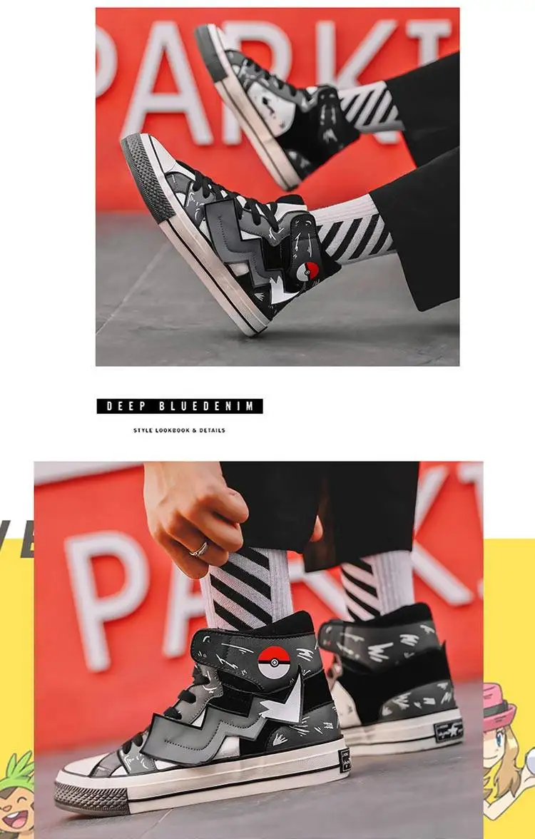 2020new ins/Японская спортивная обувь; Мужские кроссовки с амортизирующей подошвой Pokemon в стиле хип-хоп; Летние кроссовки для отдыха с героями мультфильмов; Zapatills