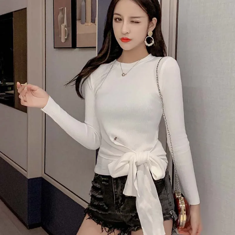 Особенности: корейский стиль, тонкий, стильный, бант, короткие, с длинными рукавами, свитер