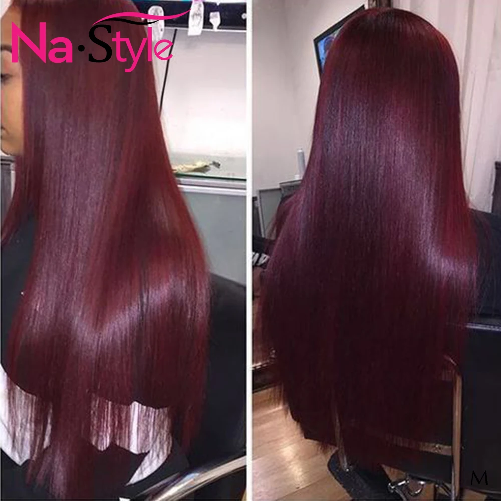 Бордовый Синтетические волосы на кружеве парик прямые Цветной парики из натуральных волос для черный Для женщин 13x6 бразильские волосы парик с ребенком волос 150 человеческих волос