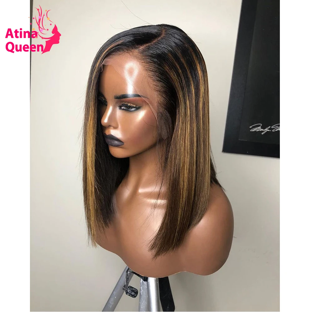 Стрижка Пикси короткие Боб человеческих волос парики 13x6 Выделите Мёд блондинка Синтетические волосы на кружеве парики предварительно выщипанные волосы Remy микс Цветной эффектом деграде (переход от темного к парики