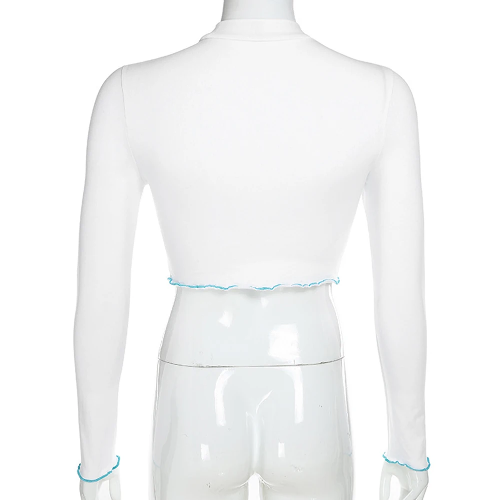Женская футболка с длинным рукавом и принтом бабочки в стиле Харадзюку, Повседневная белая футболка с высоким воротником, шикарные уличные кроп-топы, модная женская одежда, топы