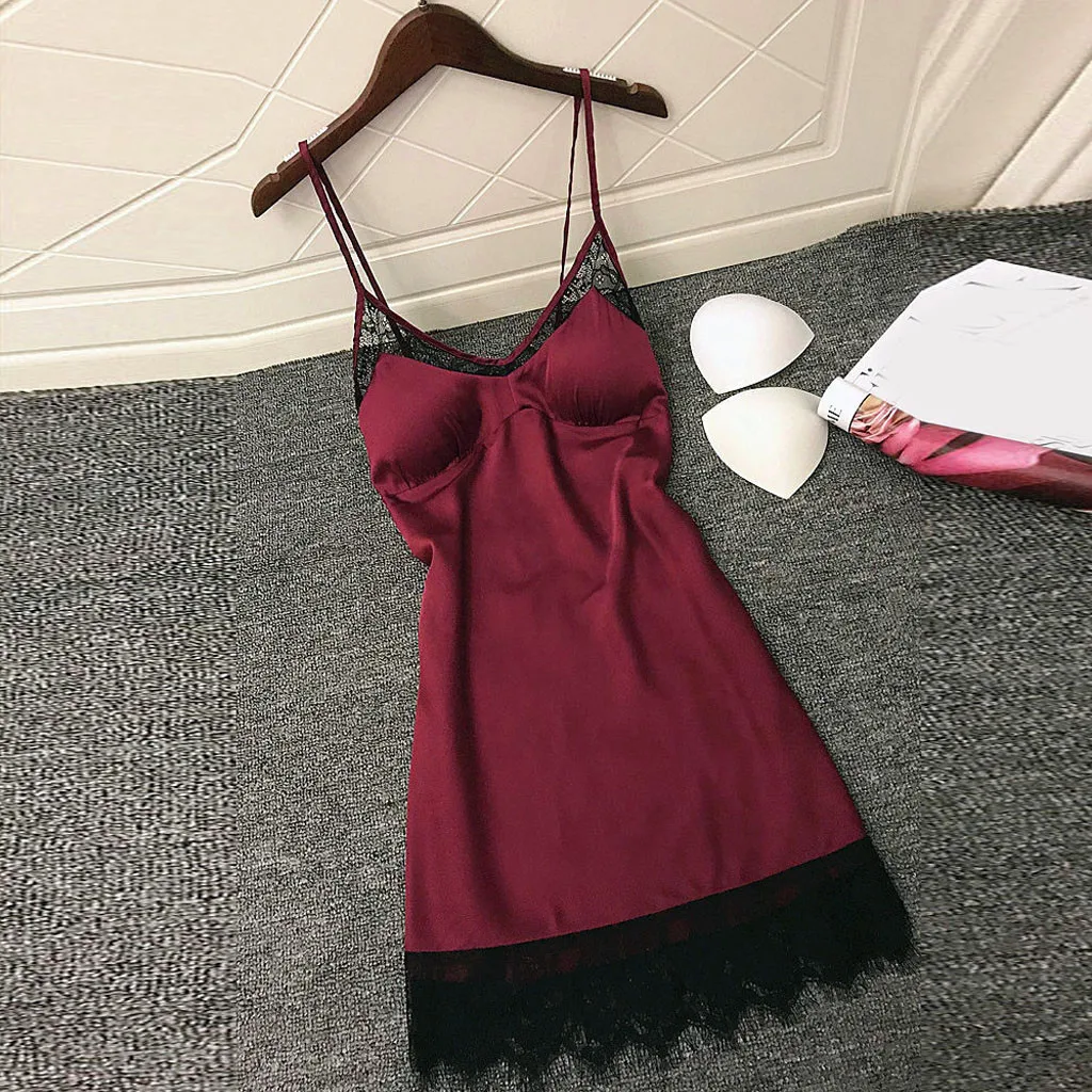 Женская Сексуальная кружевная ночная рубашка белье Женская шелковая одежда для сна атласная камисоль сексуальная ночная рубашка однотонная размера плюс ночная рубашка ночная 3XL