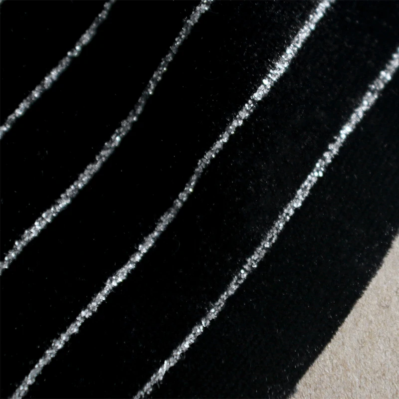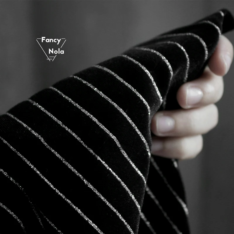 Номер товара: CG054 Фиксированная ширина: 165 см Длина: 0,5 м/шт., Таким образом, 1 шт. = 0,5 м * 1,65 м 2 шт. = 1,0 м * 1,65 м, 3 предмета в комплекте = 1,5 м * 1,65 м Покупайте больше (без обрезания) Текстура: полиэстер * Черный Бархат с серебряными полосками, слегка блестящий * Мягкое ощущение, приятная для кожи * Шикарная, достойная, Высококачественная дизайнерская ткань