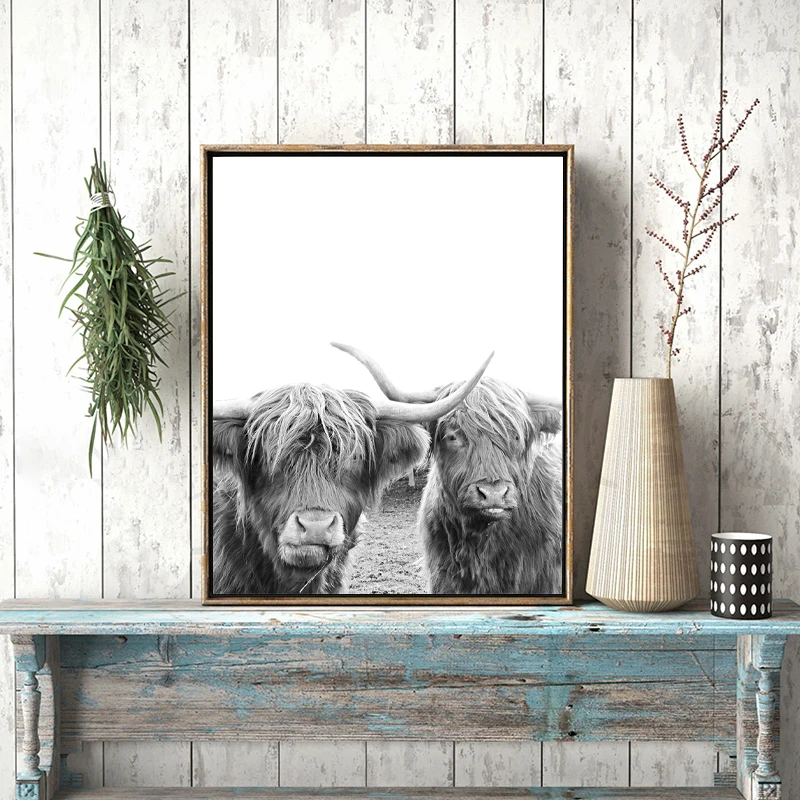 Черно-белая ферма животное Хайленд корова холст печать Шотландия корова постер ферма питомник настенная живопись деревенское украшение картина