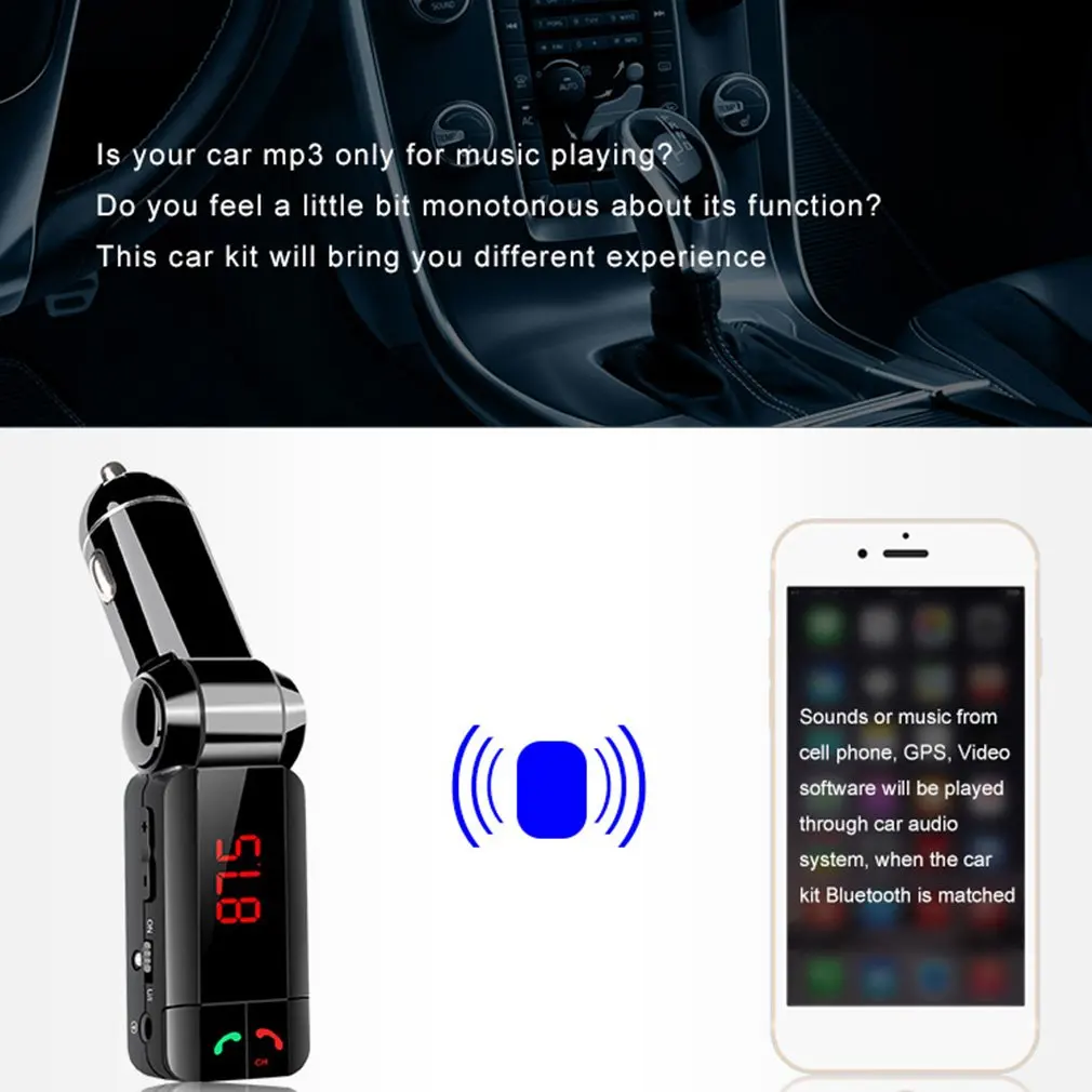 BC06S автомобильный комплект BT Hands-free вызов fm-передатчик MP3-плеер двойной USB зарядное устройство с детектором напряжения тока