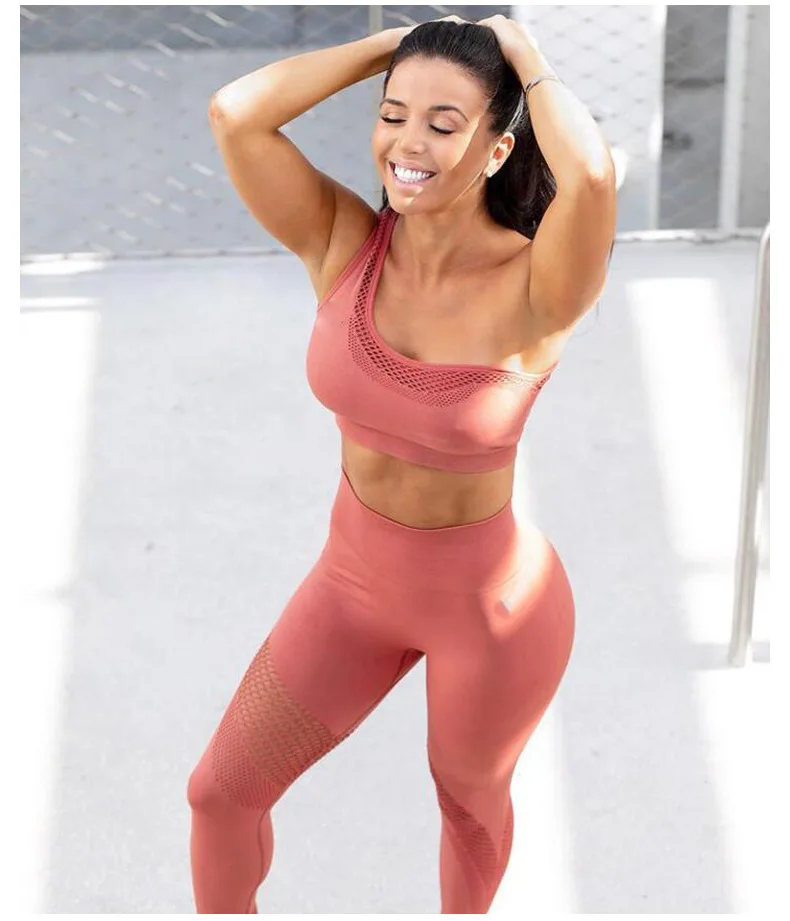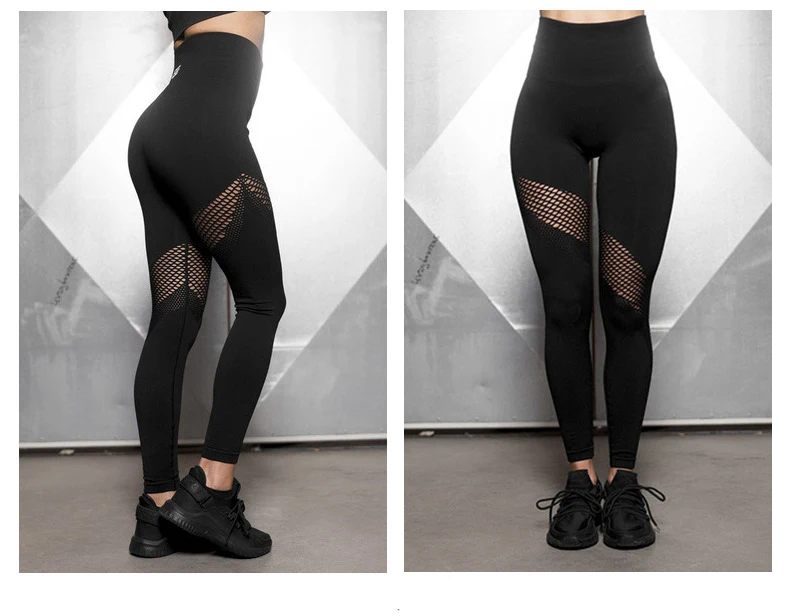 Женская спортивная одежда с сетчатыми вставками штаны для йоги высокой талией