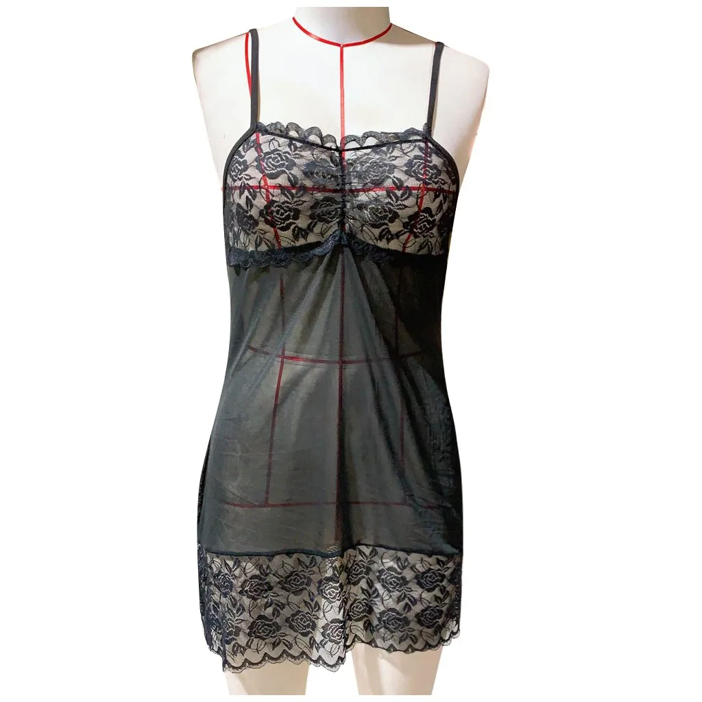 Женское кружевное нижнее белье, сексуальное мини-Ночное платье Camisola, прозрачная сексуальная ночная рубашка черного цвета размера плюс для дома