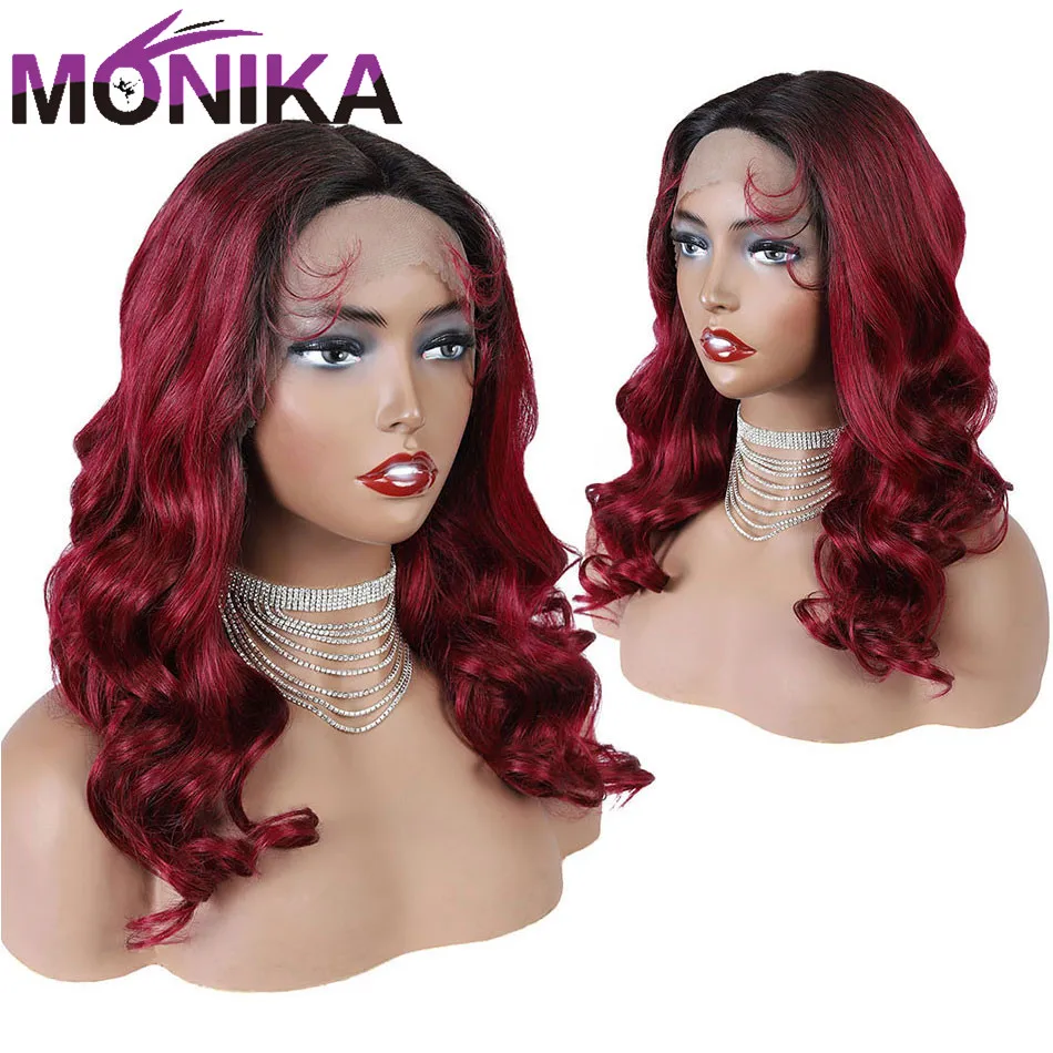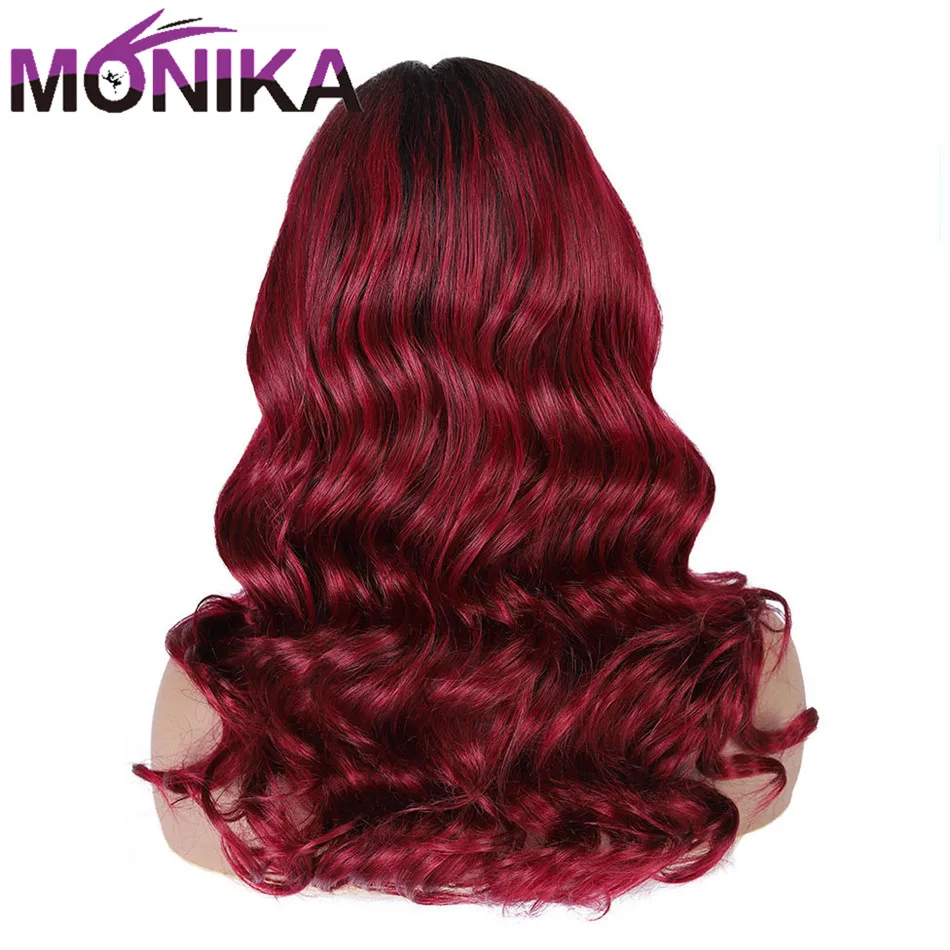 Monika 1B 99J Омбре человеческие волосы парик Закрытие парики бразильские волнистые волосы T часть кружева парик Remy Волосы 150% плотность дешевые женские парики
