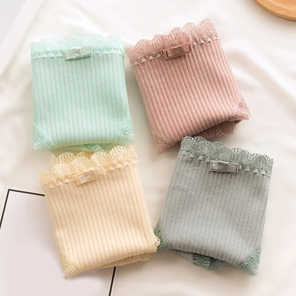 Летние повседневные Сексуальные трусы для девочек, трусики с кружевным краем, дышащие женские трусы, женское хлопковое удобное нижнее белье